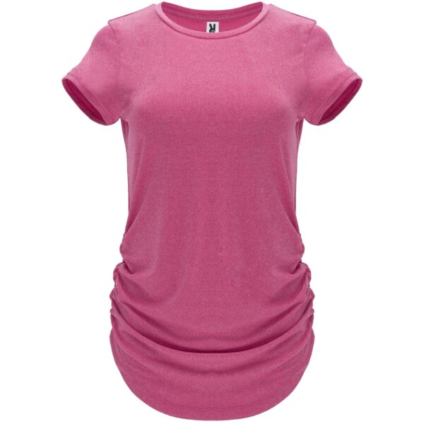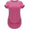 T-shirt tecnica multisport manica corta per donna. Tessuto poliestere tatto cotone. Girocollo dello steso tessuto. Laterali elastici arricciati per un migliore adattamento al corpo. Taglio aderente e lungo speciale.