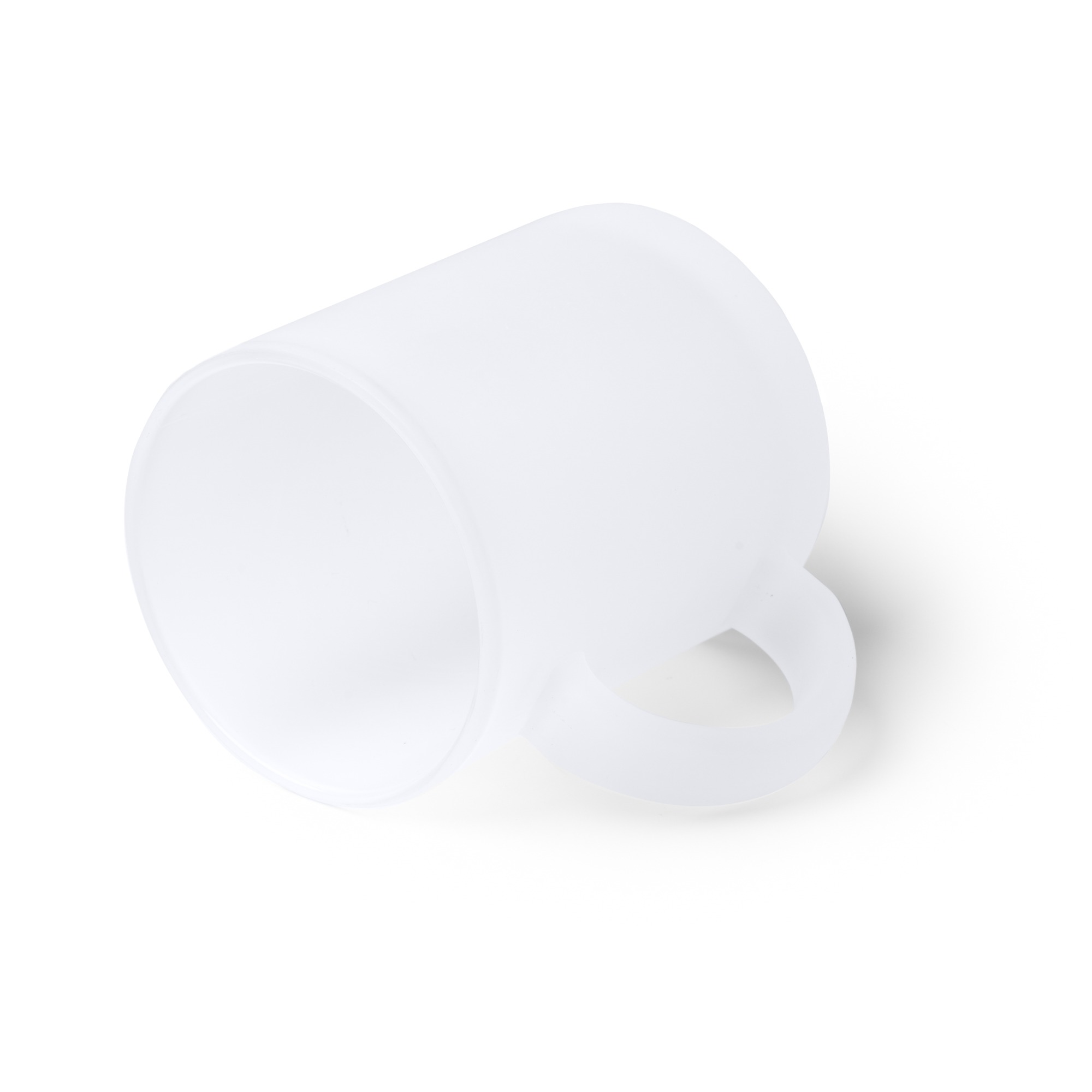 Tazza in vetro da 350 ml con finitura glassata. Specifica per la sublimazione. Confezione in scatola.