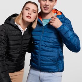 Parka imbottito con cappuccio removibile e regolatori elastici. Materiale impermeabile. Zip frontale abbinata coperta da un’ampia patta in tessuto uguale. Pannelli laterali che modellano delicatamente il capo. Polsini regolabili con velcro. Tasche laterali con zip abbinate e coperta da una pattina in tessuto abbinato. Tasca interna sul petto a sinistra. Accesso interno per la rilavorazione. Certificazione GRS.