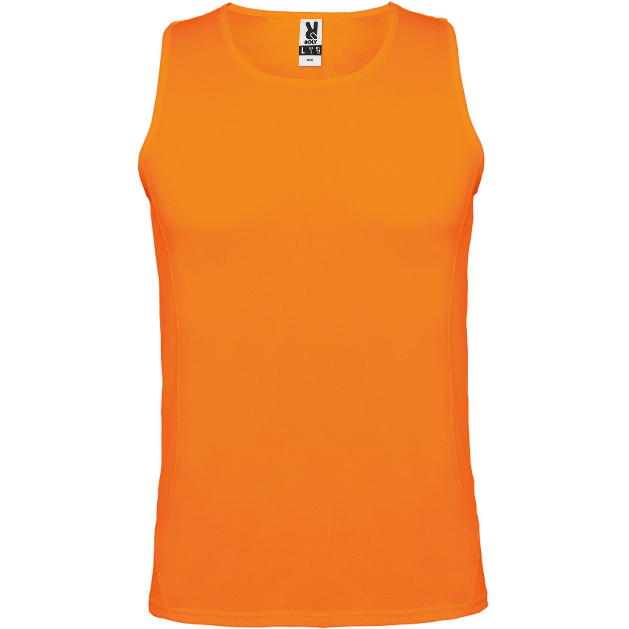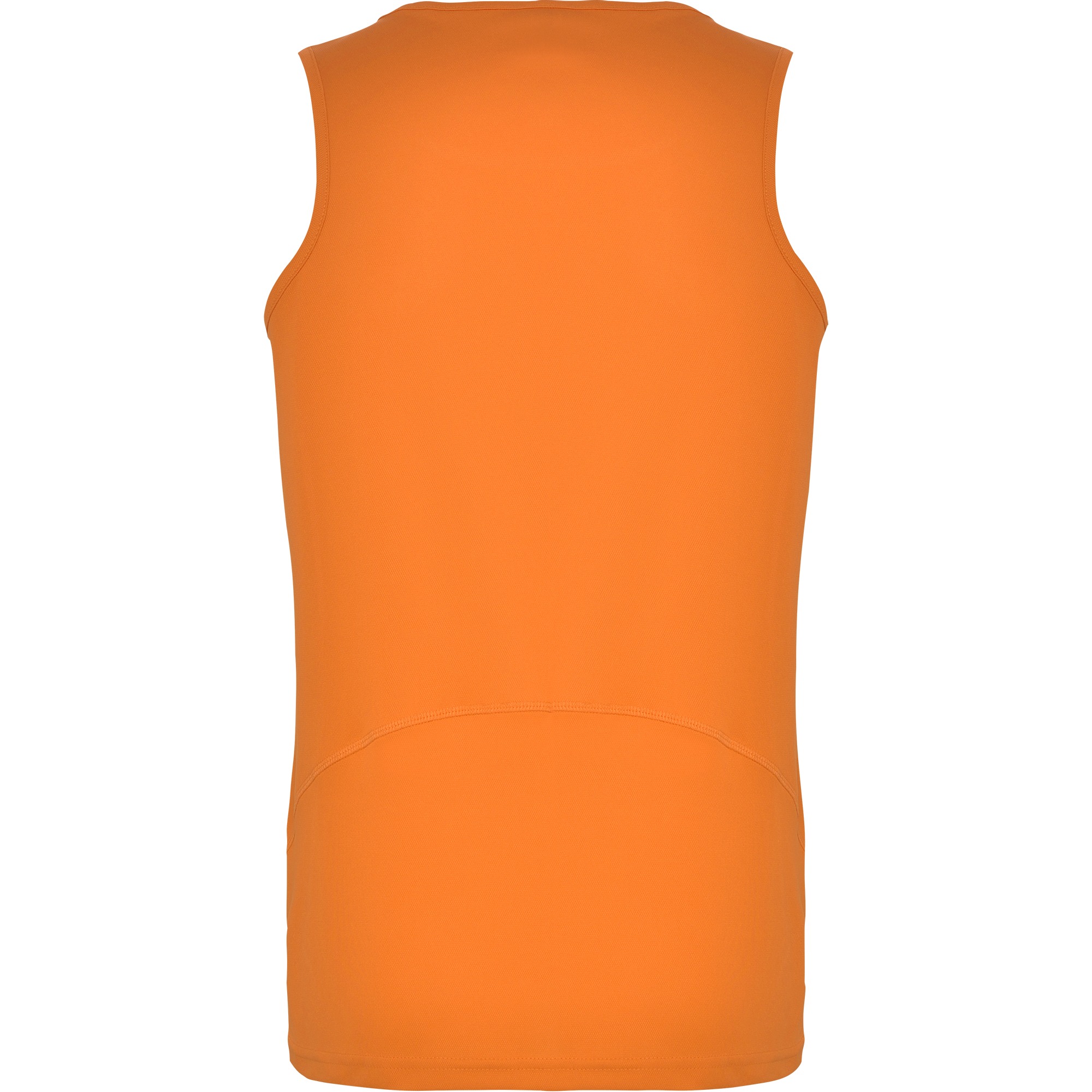 Canotta tecnica traspirante. Giromanica e colletto bordati nello stesso tessuto. Cuciture overlock tono su tono. Pannello posteriore curvo che si estende fino all’orlo anteriore. Certificazione UV.
