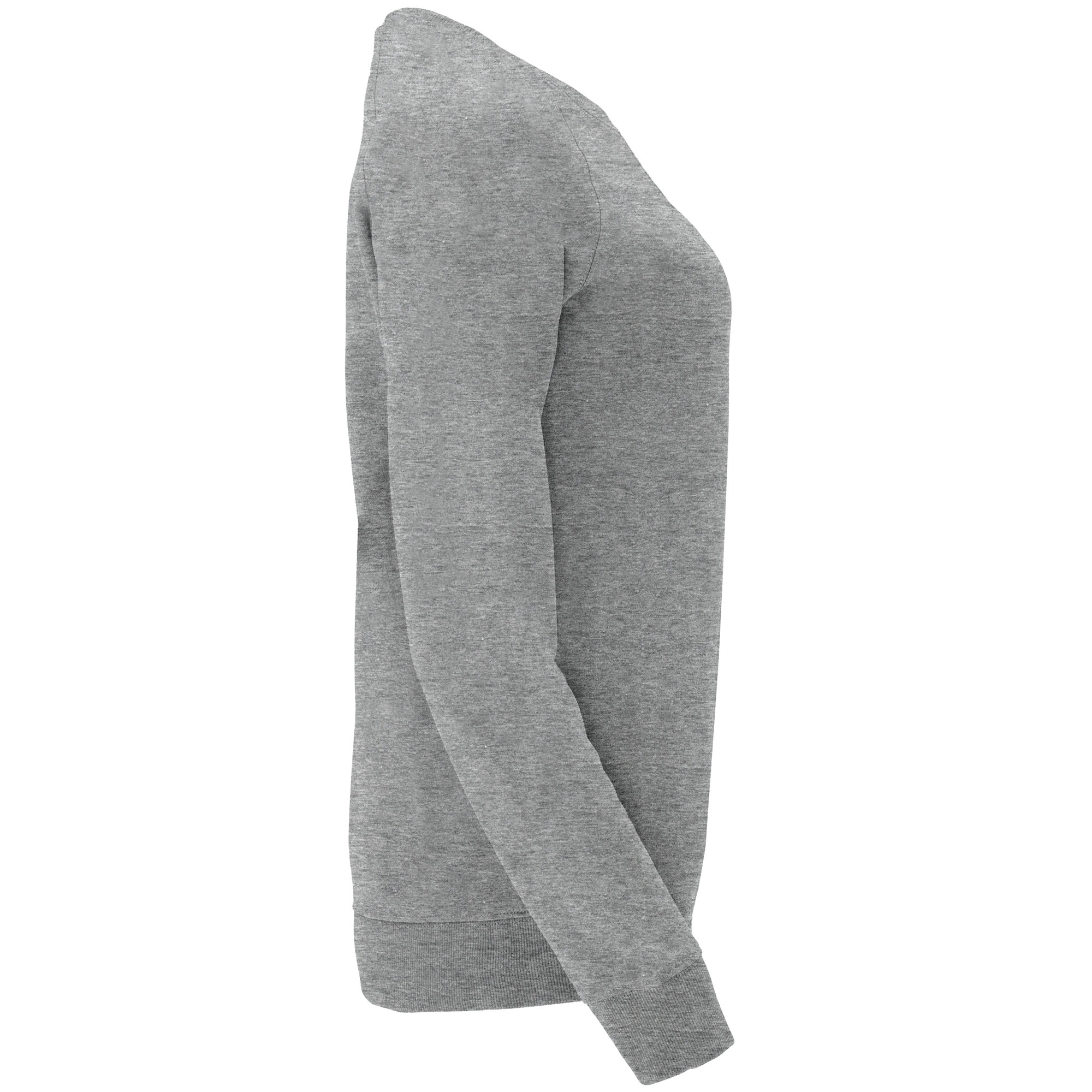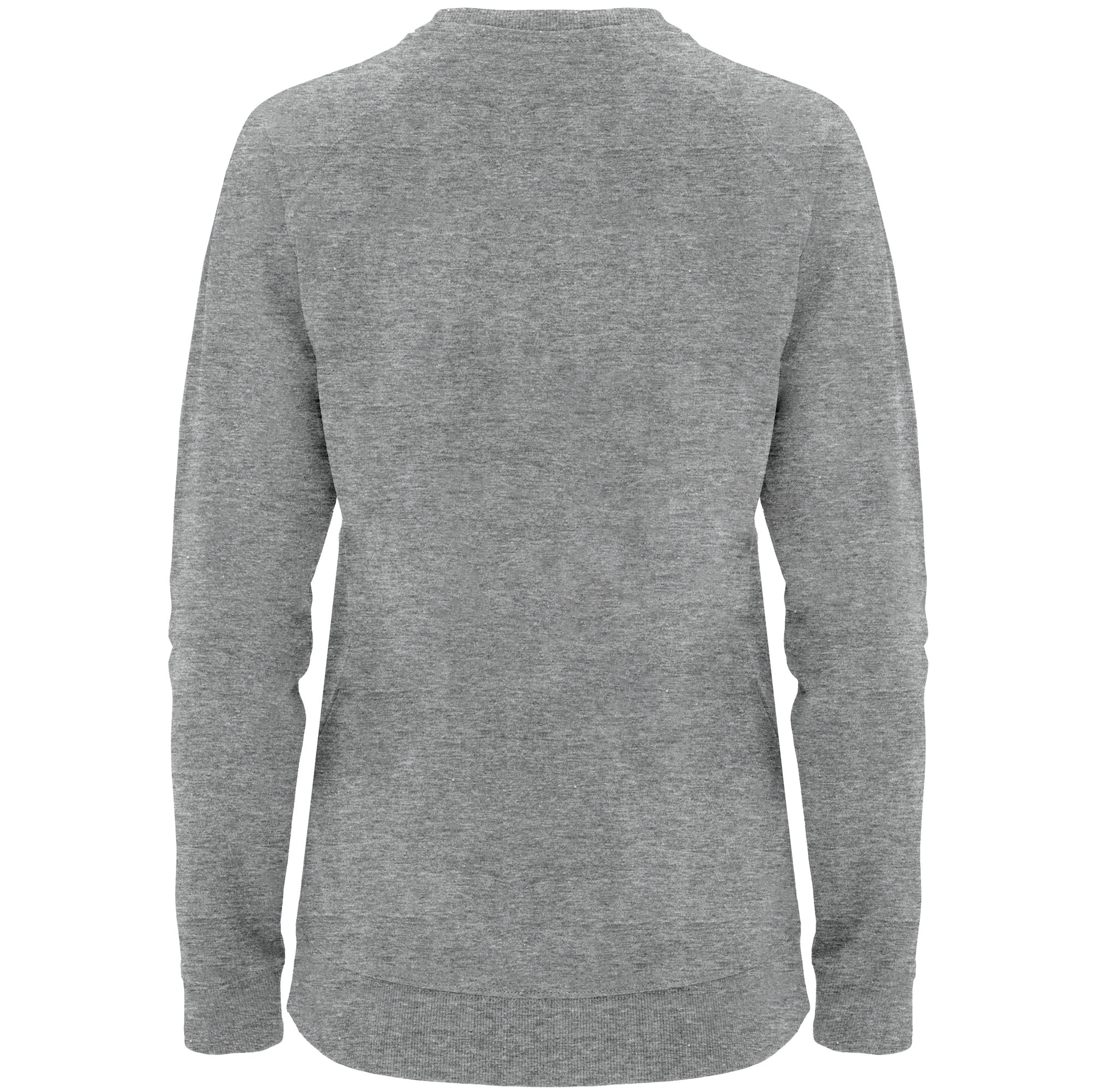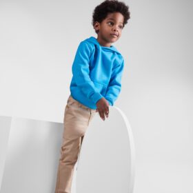 Felpa a maniche lunghe in cotone stile raglan. Con colletto, polsini e girovita, in costina 2×1. Girocollo con copri cuciture di rinforzo all’interno del colletto. Dettaglio frontale con cuciture incrociate, in tessuto a costine 2×1.