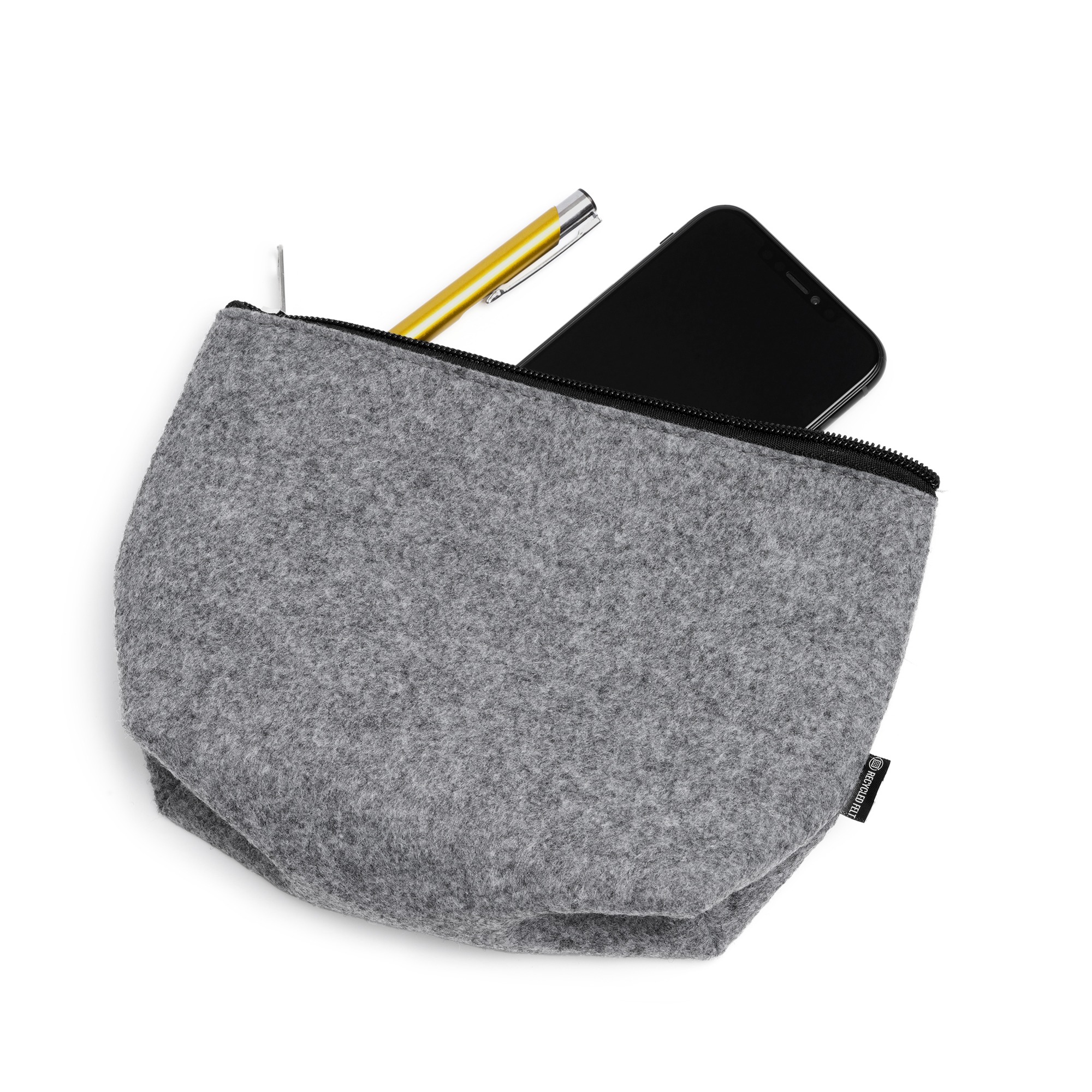 All’interno, la borsa da toilette offre ampio spazio per riporre i prodotti per la cura personale, il make-up, gli articoli da toilette o qualsiasi altro oggetto da portare con sé. Il feltro riciclato utilizzato in questa borsa è durevole e resistente e protegge i vostri prodotti da eventuali danni.