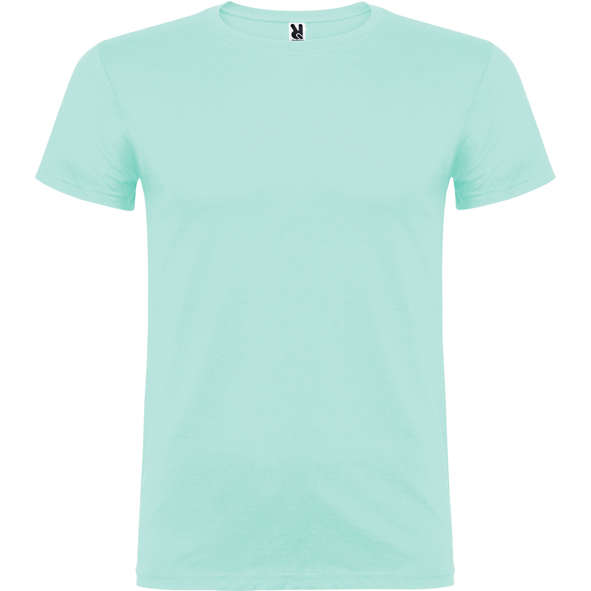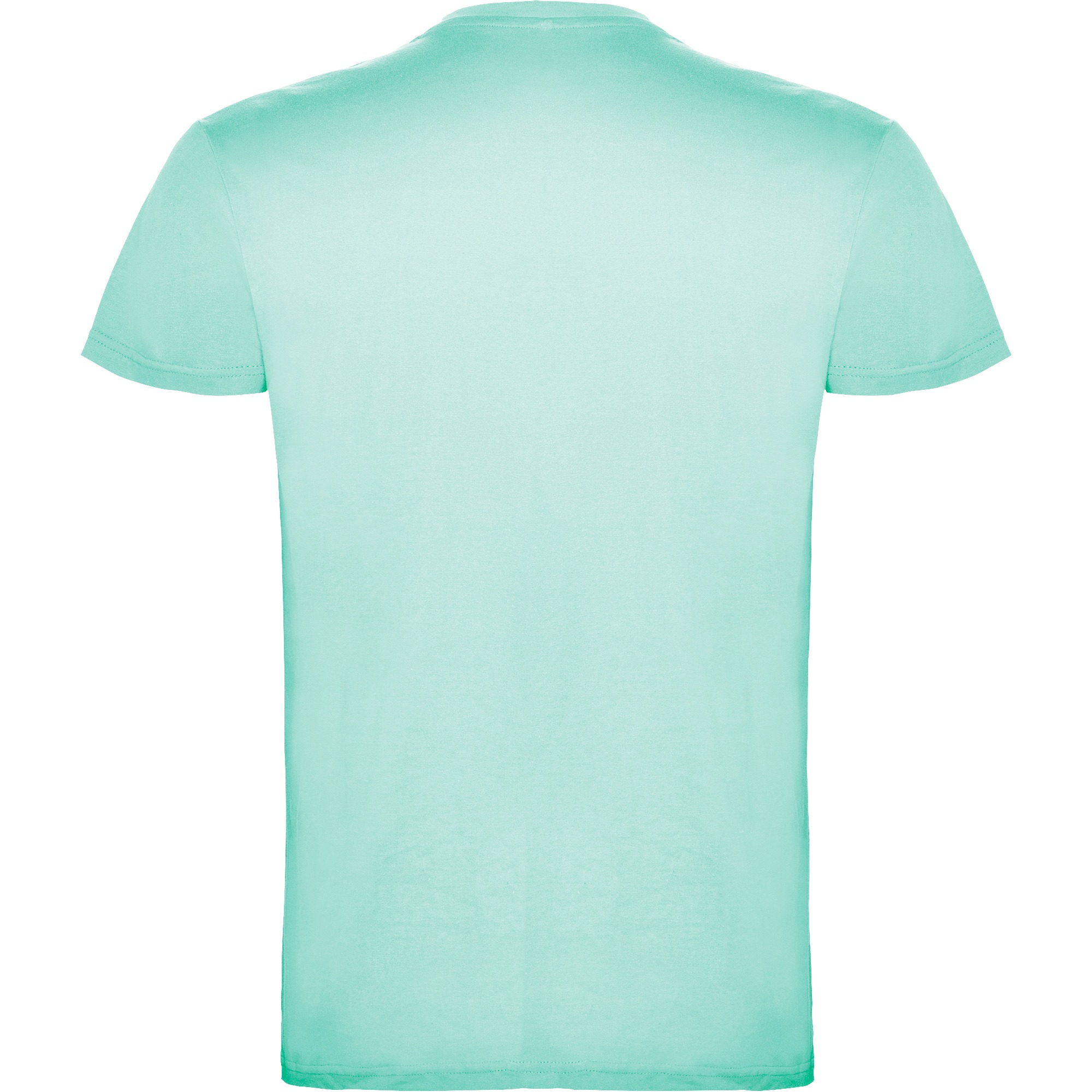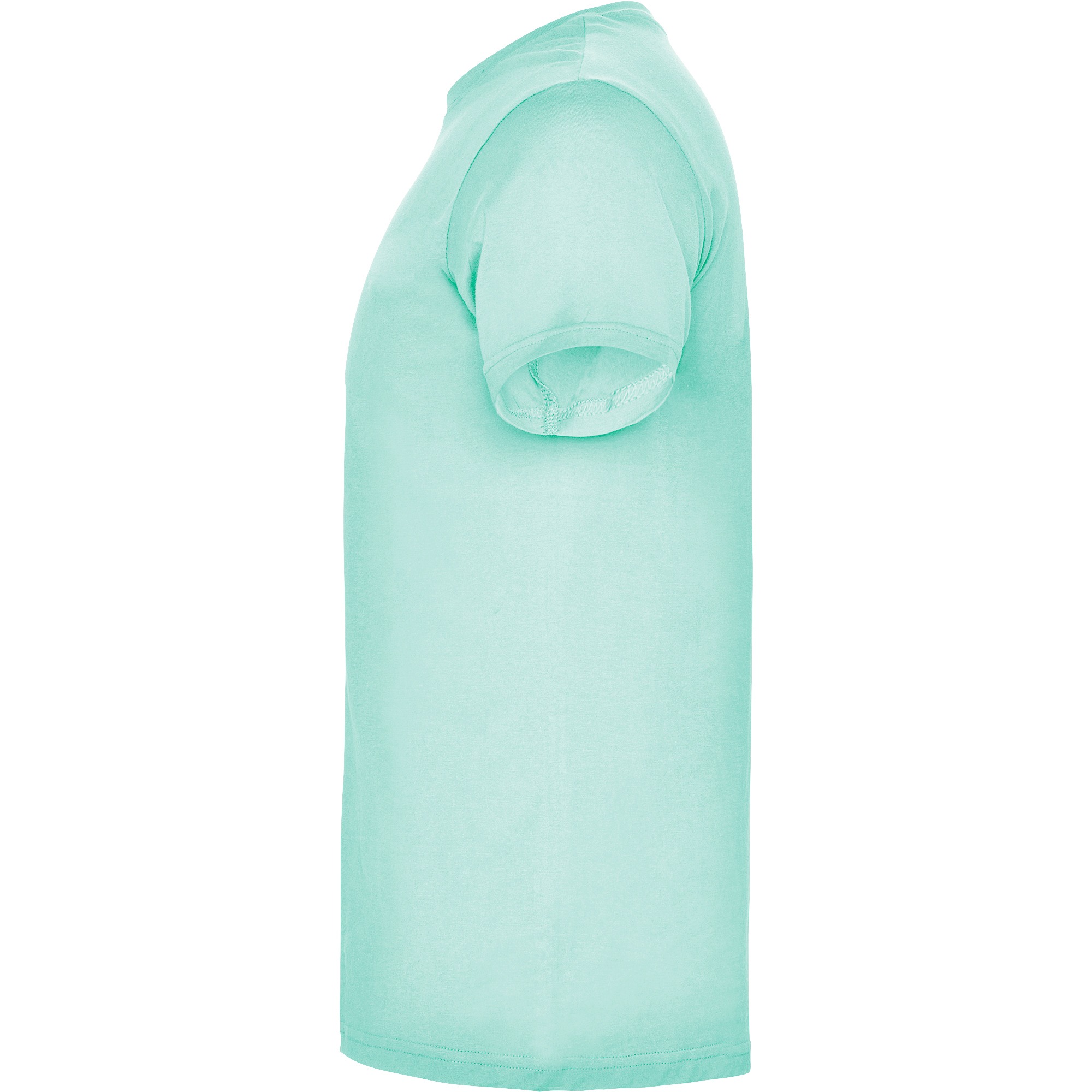 T-shirt tubolare a maniche corte in taglie da adulto e con cuciture laterali in taglie da bambino. Girocollo a coste 1×1. Scollo nastrato in tessuto coordinato.