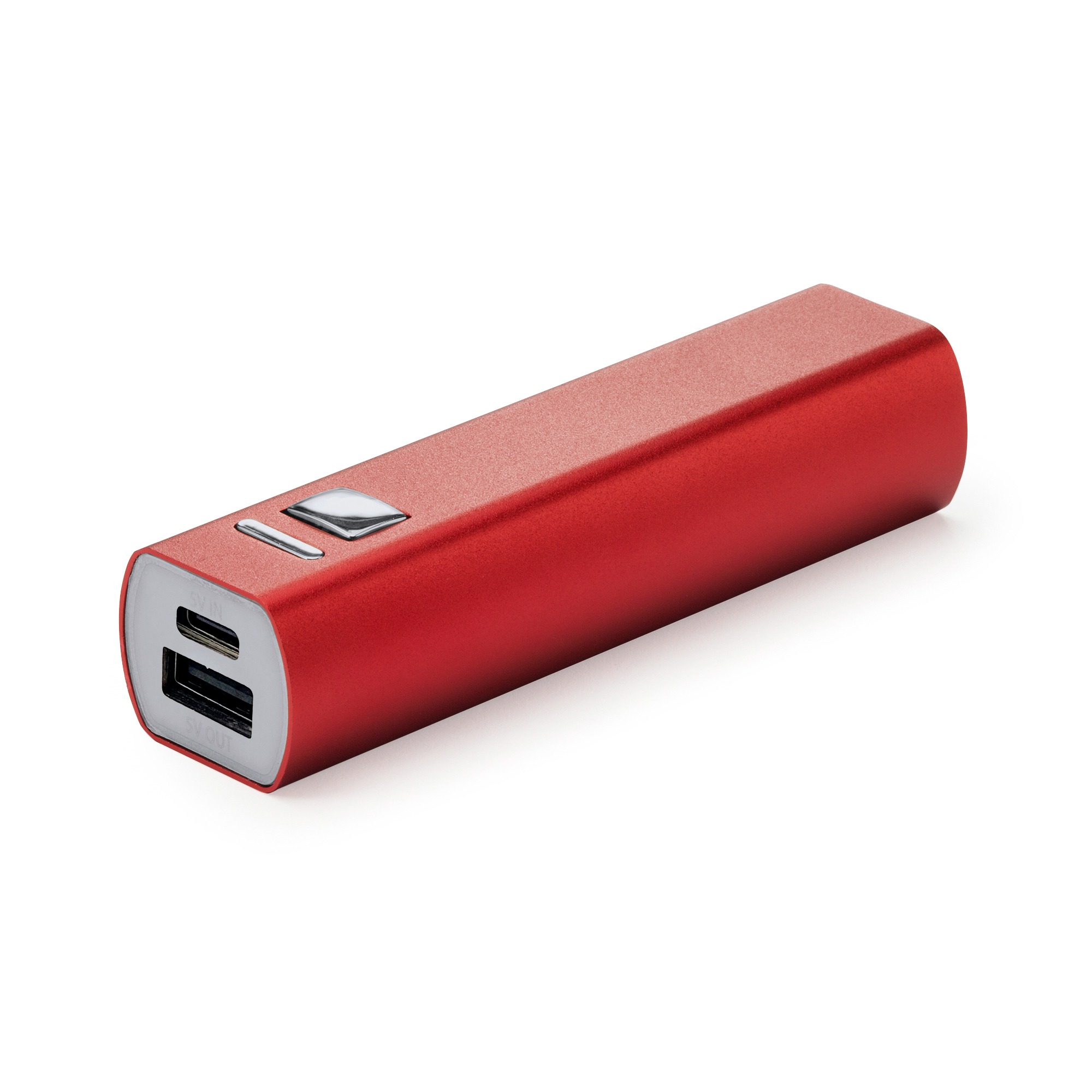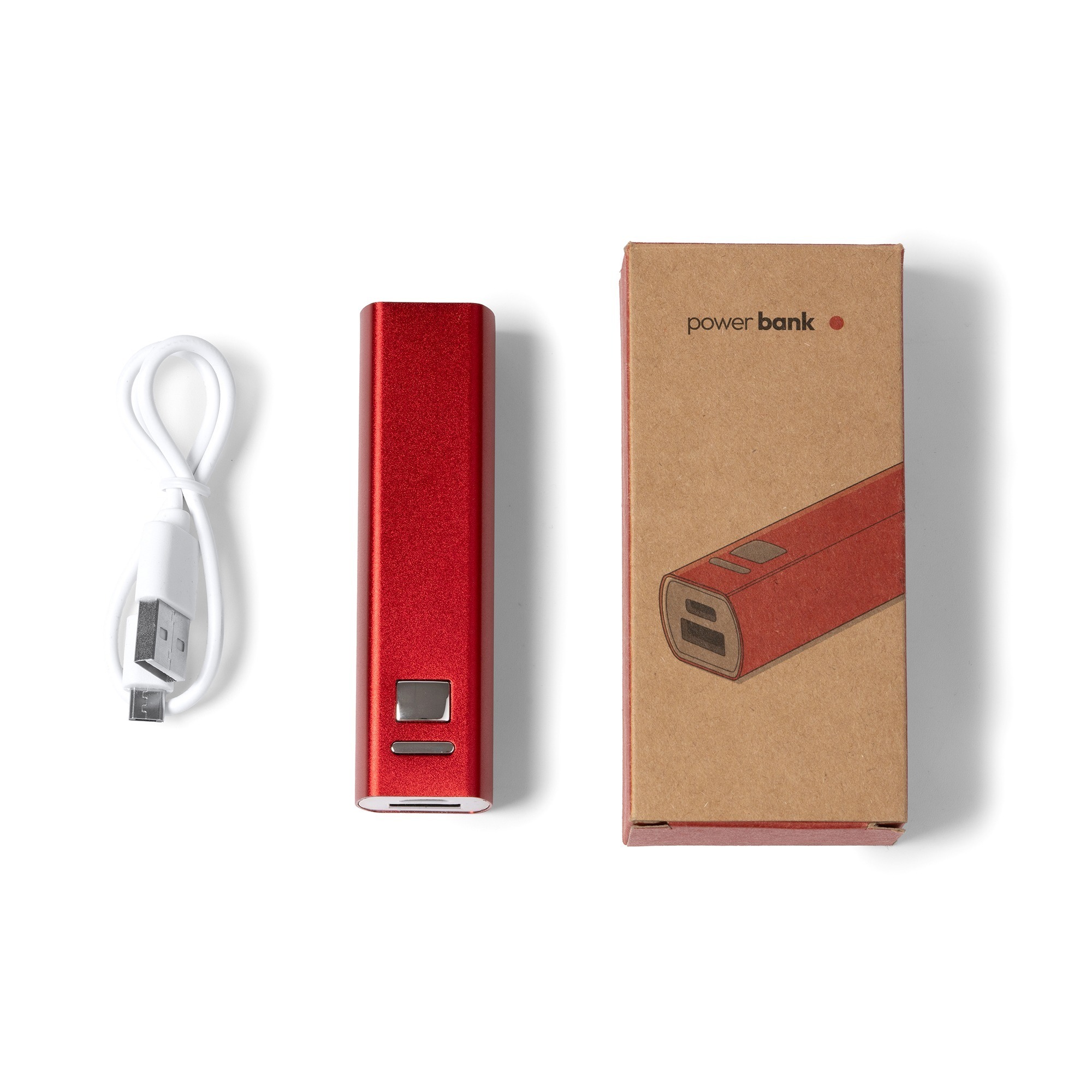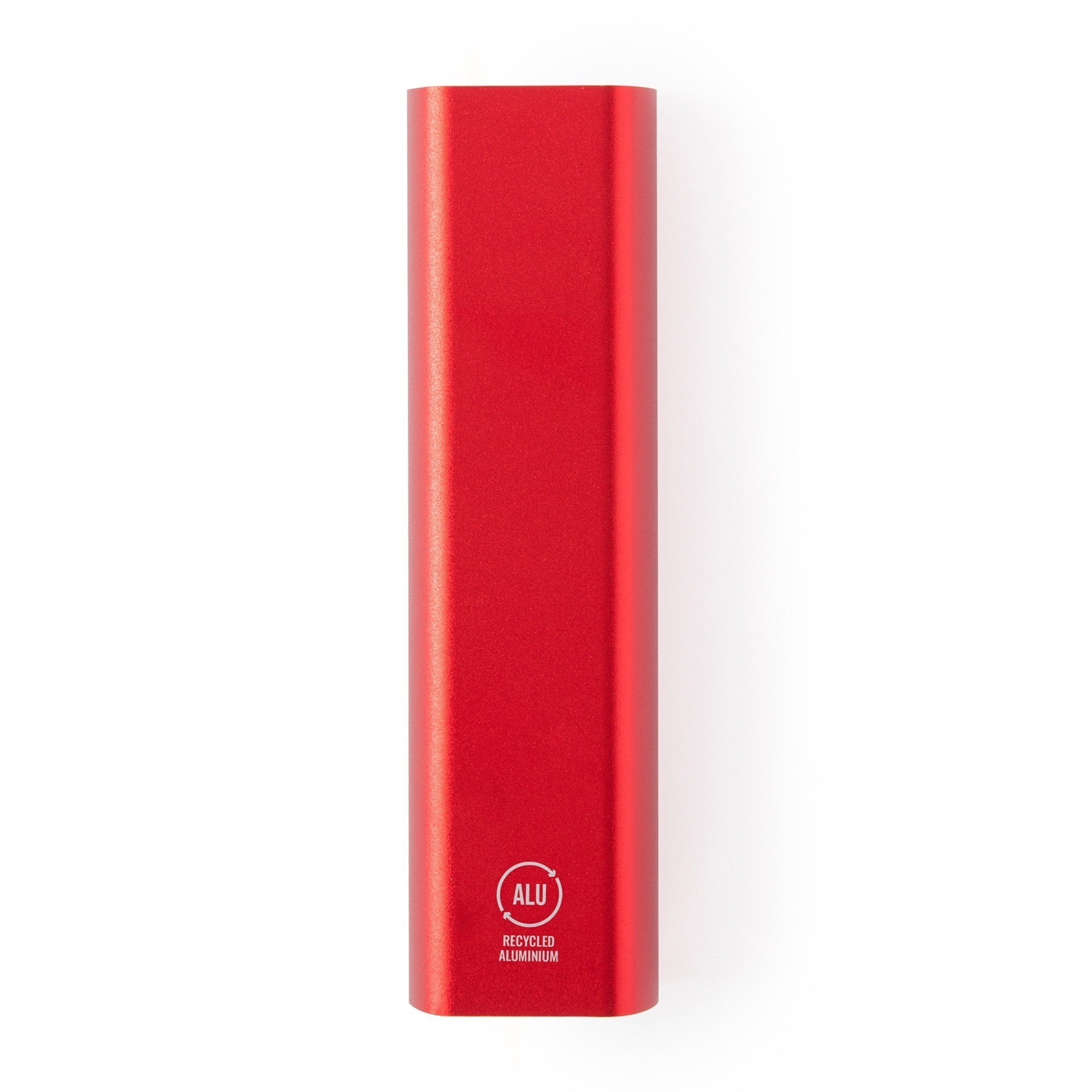 Power bank in alluminio riciclato con capacità di 2.600 mAh. Indicatore di ricarica LED. Ingresso e uscita di tipo C. Confezione in scatola di design.