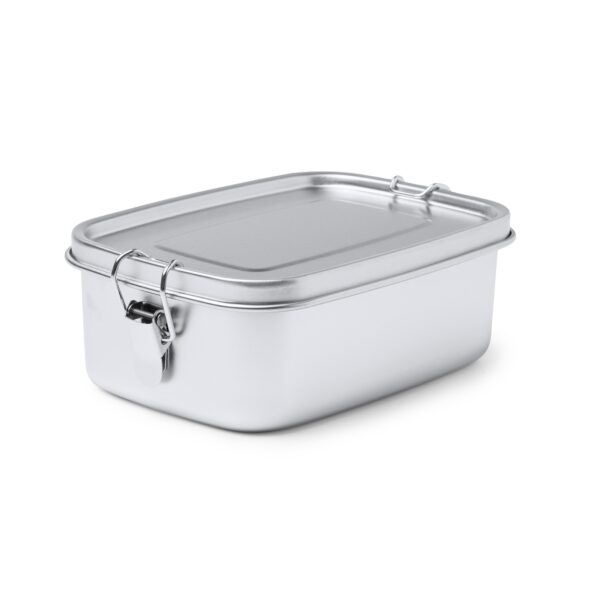 Cestino per il pranzo in acciaio inox 304 con sistema di chiusura di sicurezza con fibbie laterali. Ampia capacità di 1,2 litri per conservare gli alimenti.