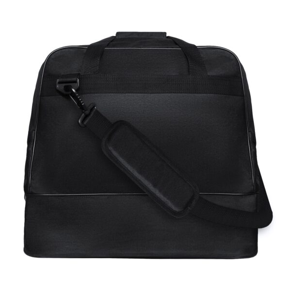 Borsa sportiva con tasca removibile per le scarpe. Tasca laterale con cerniera. Doppia impugnatura. Impugnatura lunga regolabile da incrociare con la spalla imbottita (53 l.).