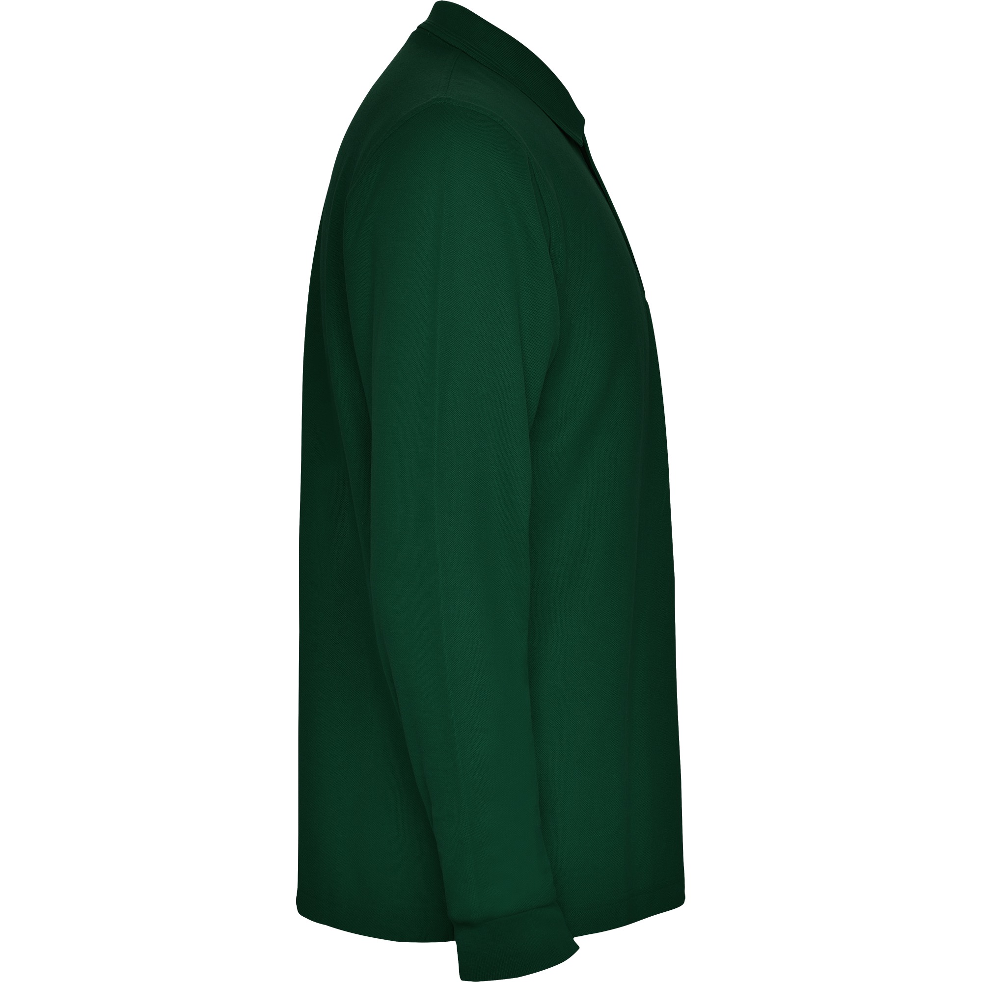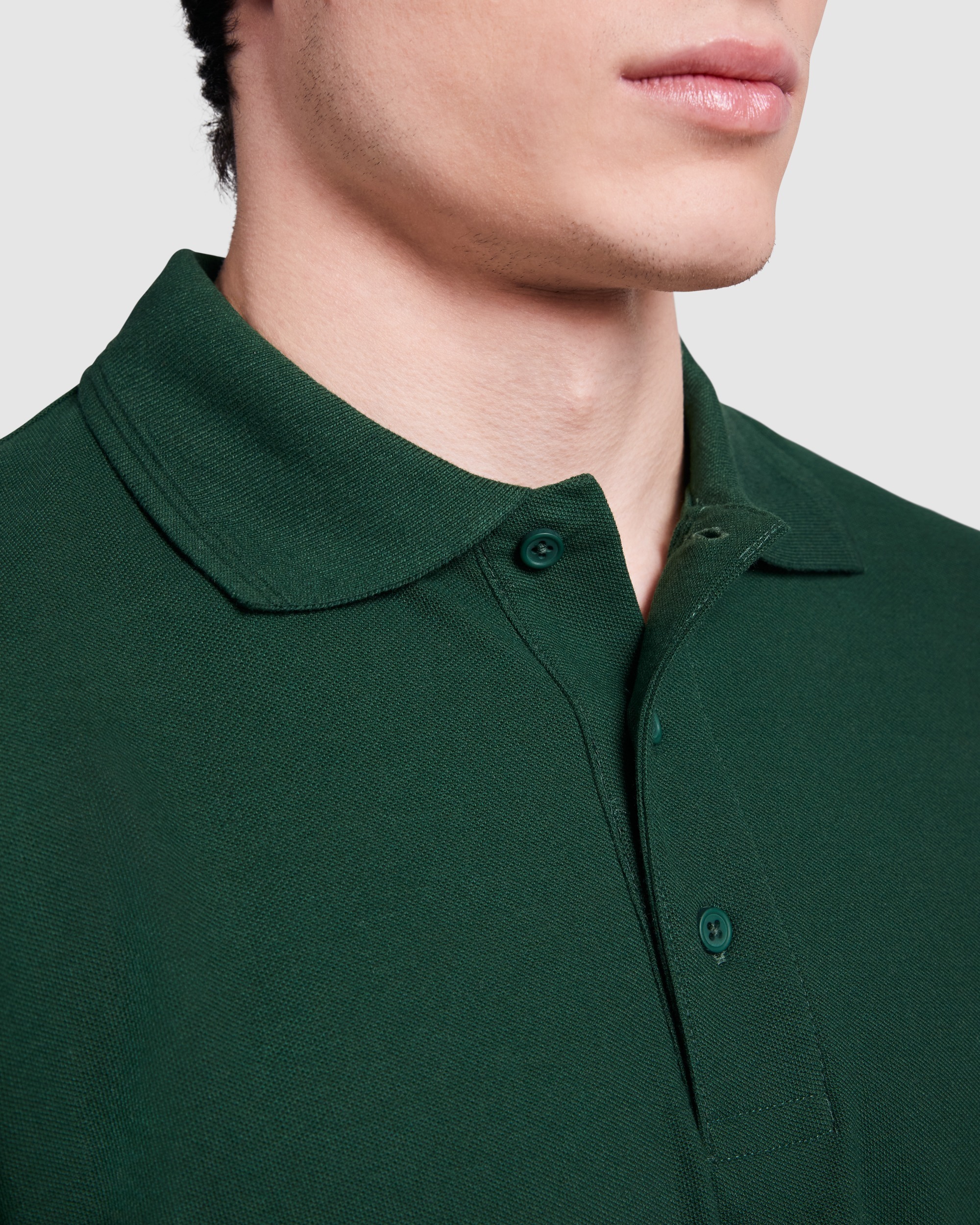 Polo a maniche lunghe. Punto piqué. Colletto e polsini intrecciati 1×1. Chiusura a 3 bottoni. Scollo nastrato in tessuto coordinato. Spacchetti laterali sull’orlo. Tasca, opzionale.