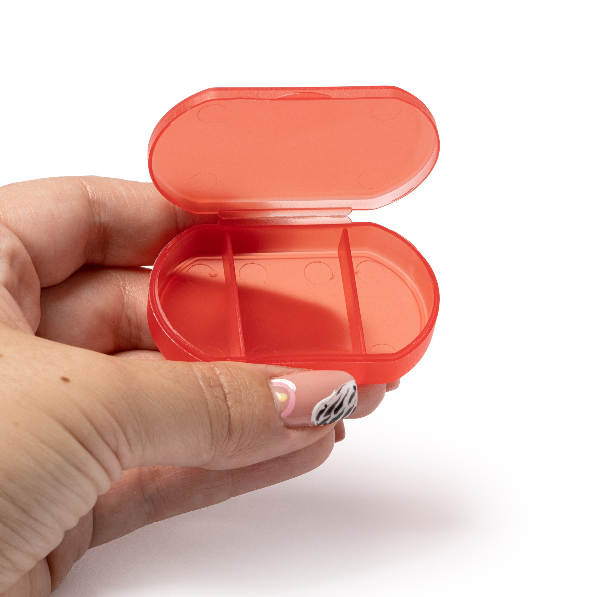 Portapillole leggero, a tre scomparti. Design colorato con finitura traslucida.