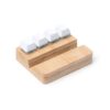 Supporto per smartphone in bambù con funzione antistress. Il suo design presenta quattro tasti che è possibile premere e utilizzare come antistress.