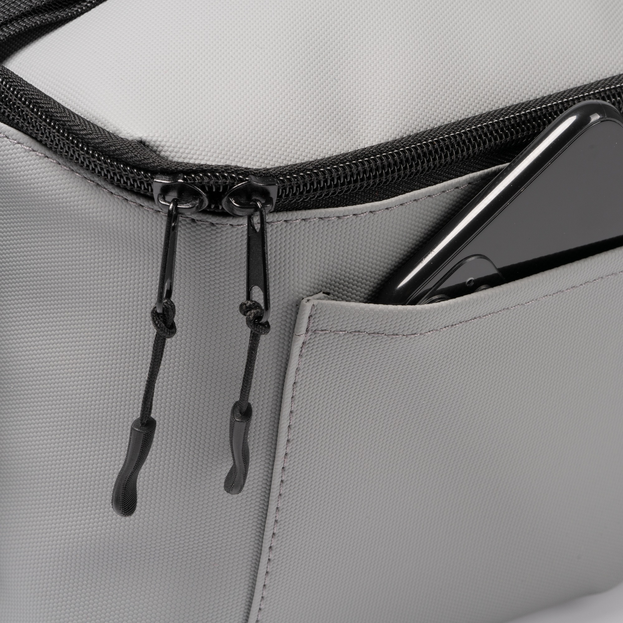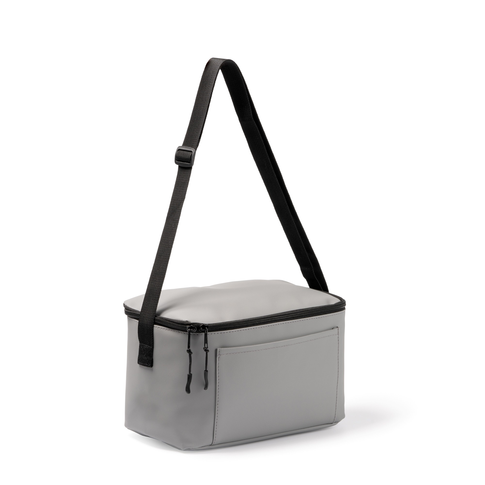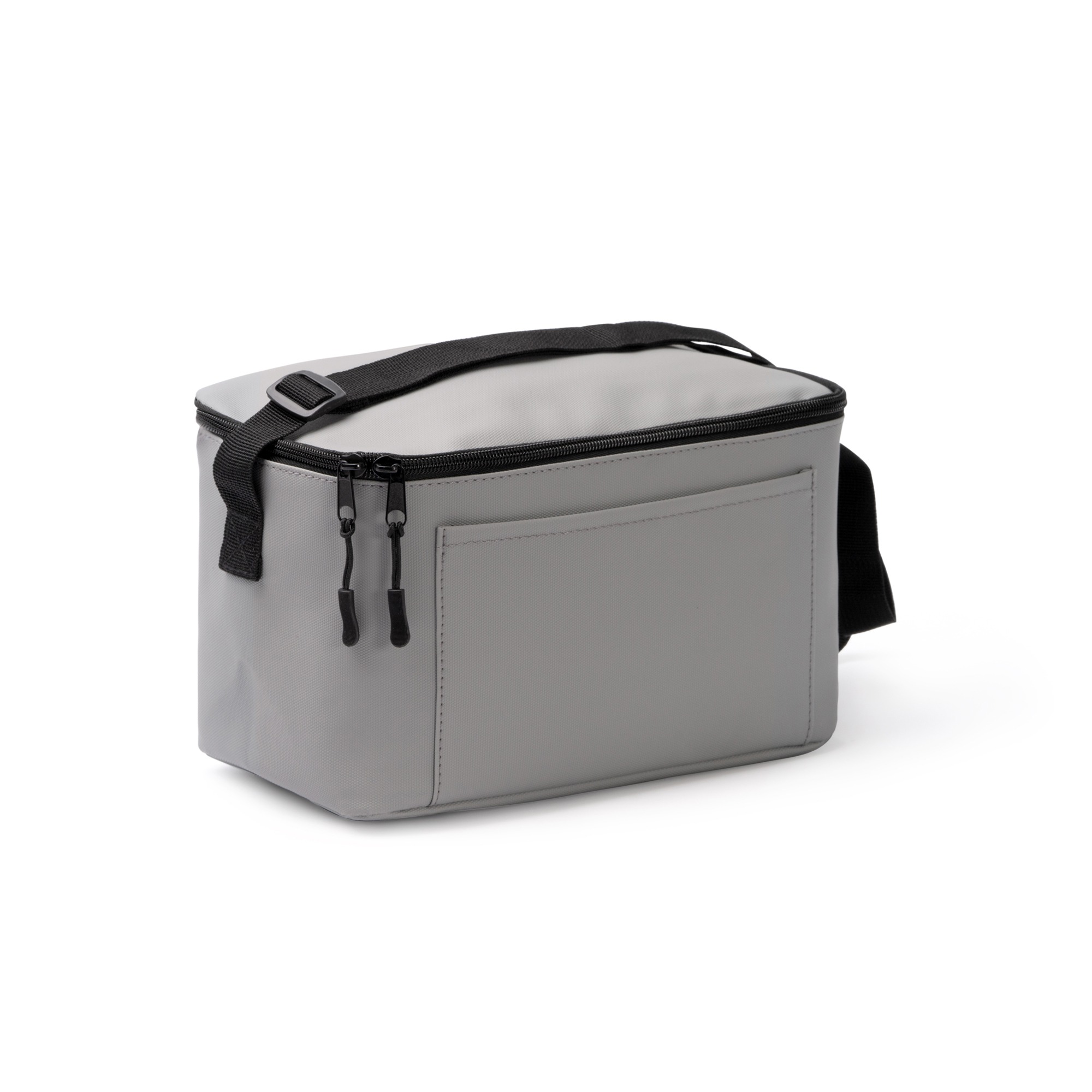 Refrigeratore realizzato in pelle PU con manici regolabili. Vano isotermico interno. Pratica tasca esterna frontale.