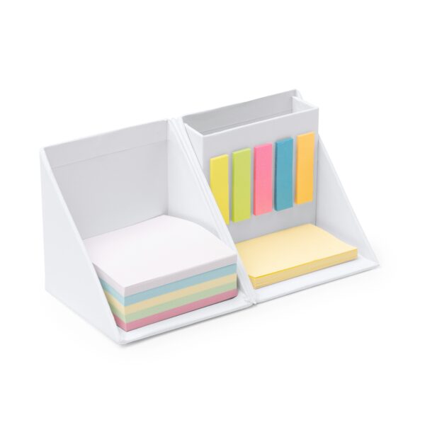 Aggiungi al carrelloSet da scrivania in cartone a forma di cubo composto da matita, blocco note (250 fogli) e 180 foglietti adesivi in vari colori.