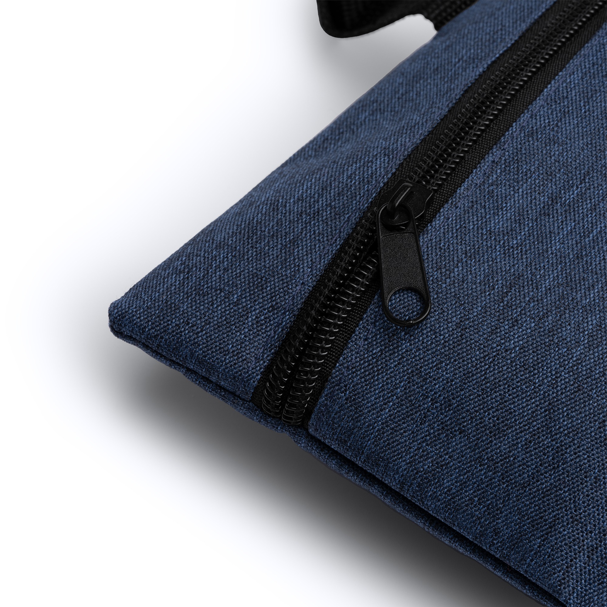 Portadocumenti realizzato in poliestere riciclato RPET 600D, offre una soluzione ecologica e durevole per l’organizzazione dei documenti. Include una maniglia per il trasporto e una cerniera abbinata, per garantire comfort e sicurezza. Ideale per i professionisti che cercano un’opzione sostenibile senza compromettere la funzionalità e lo stile dei loro accessori da lavoro. Perfetto per tenere tutto in ordine quando si è in viaggio.