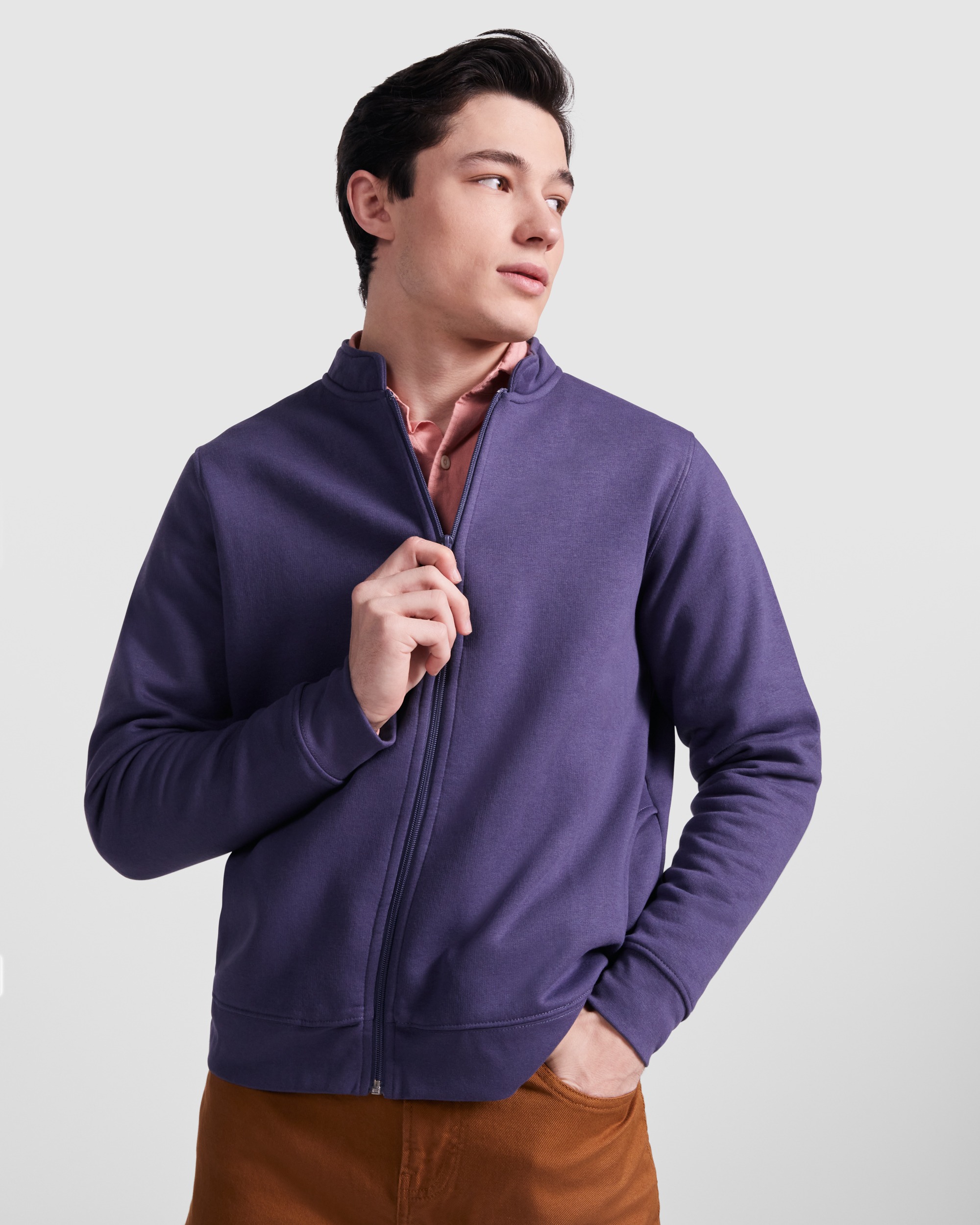 Felpa con interno spazzolato a maniche lunghe e colletto coreana. Copri cuciture