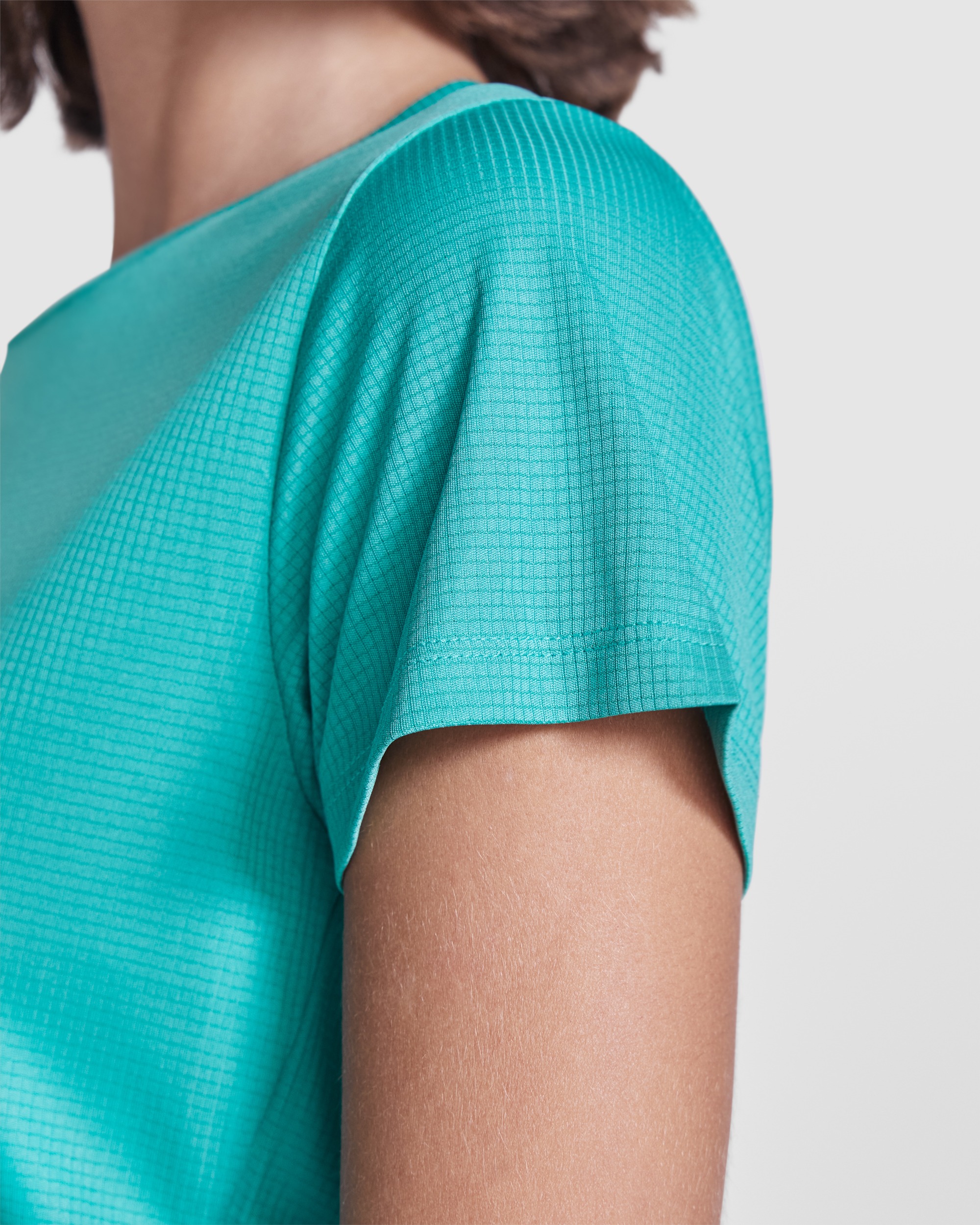 T-shirt tecnica aderente traspirante a maniche corte. Roly Control Dry. Anti-batterico. Orlo esteso sul retro. Cuciture laterali in avanti. Girocollo e nastratura del colletto tono su tono. Certificazione GRS.