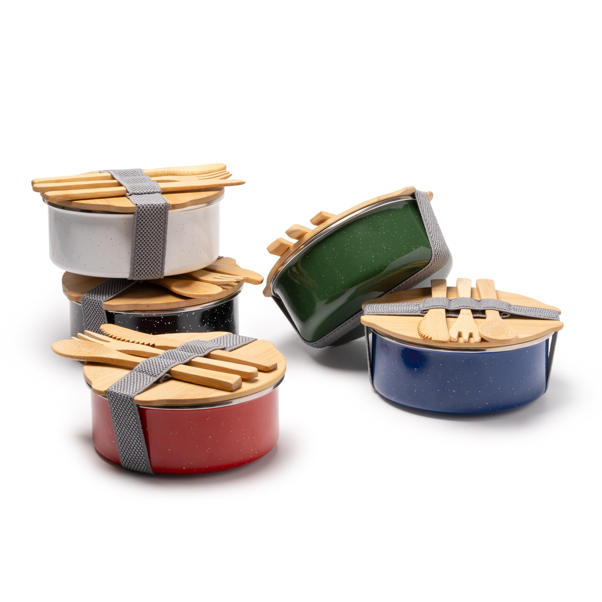 Il portapranzo in metallo è dotato di un resistente rivestimento in ceramica e di un coperchio in bambù fissato con un elastico per mantenere il cibo al sicuro. Include un pratico set di posate in bambù. Con una capacità di 750 ml, è ideale per trasportare pranzi sani e sostenibili. Questo design combina eleganza e funzionalità, perfetto per l’uso in ufficio, a scuola o ovunque sia necessario un pasto pratico.