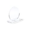 Trofeo in vetro dal design circolare con base rettangolare. Include custodia nera.