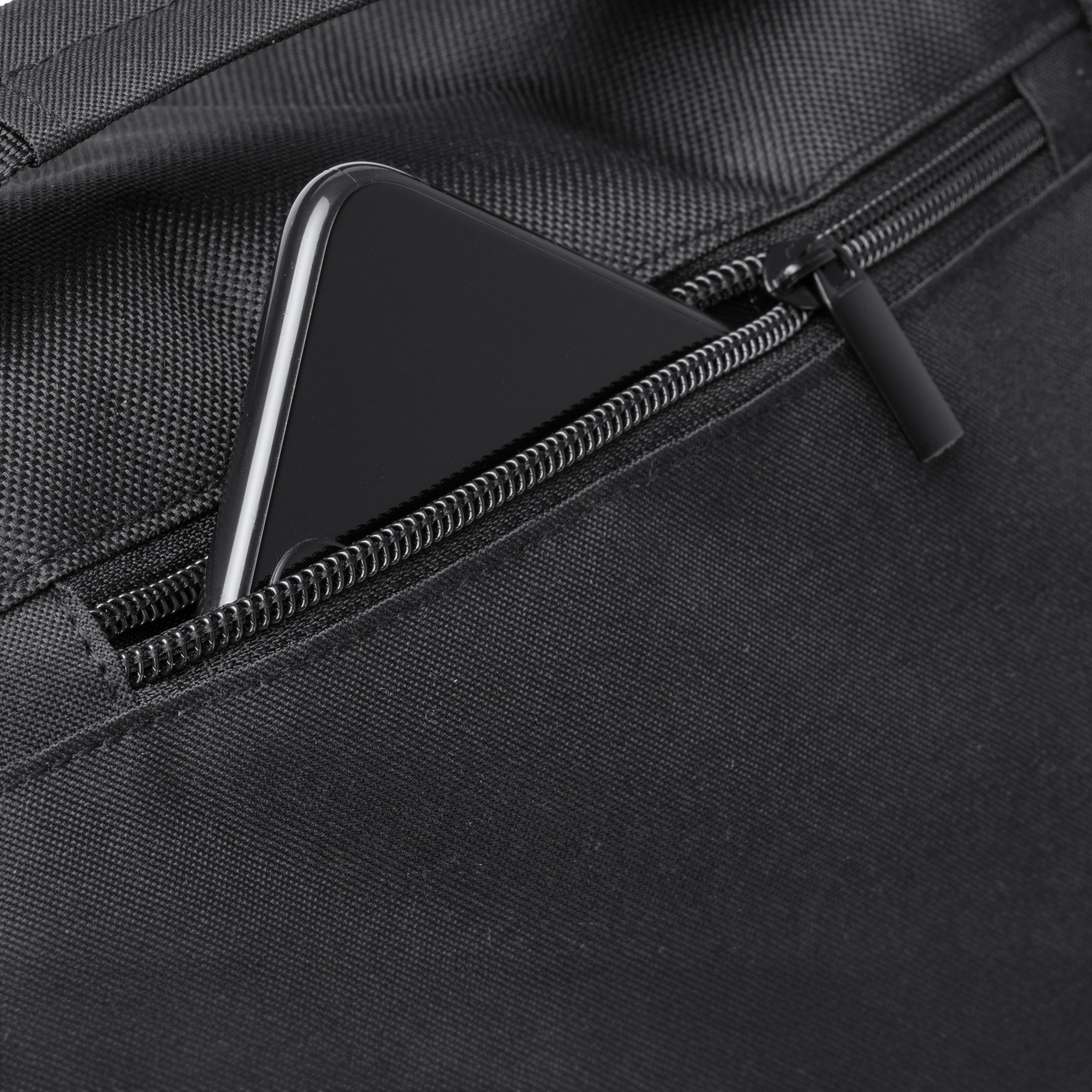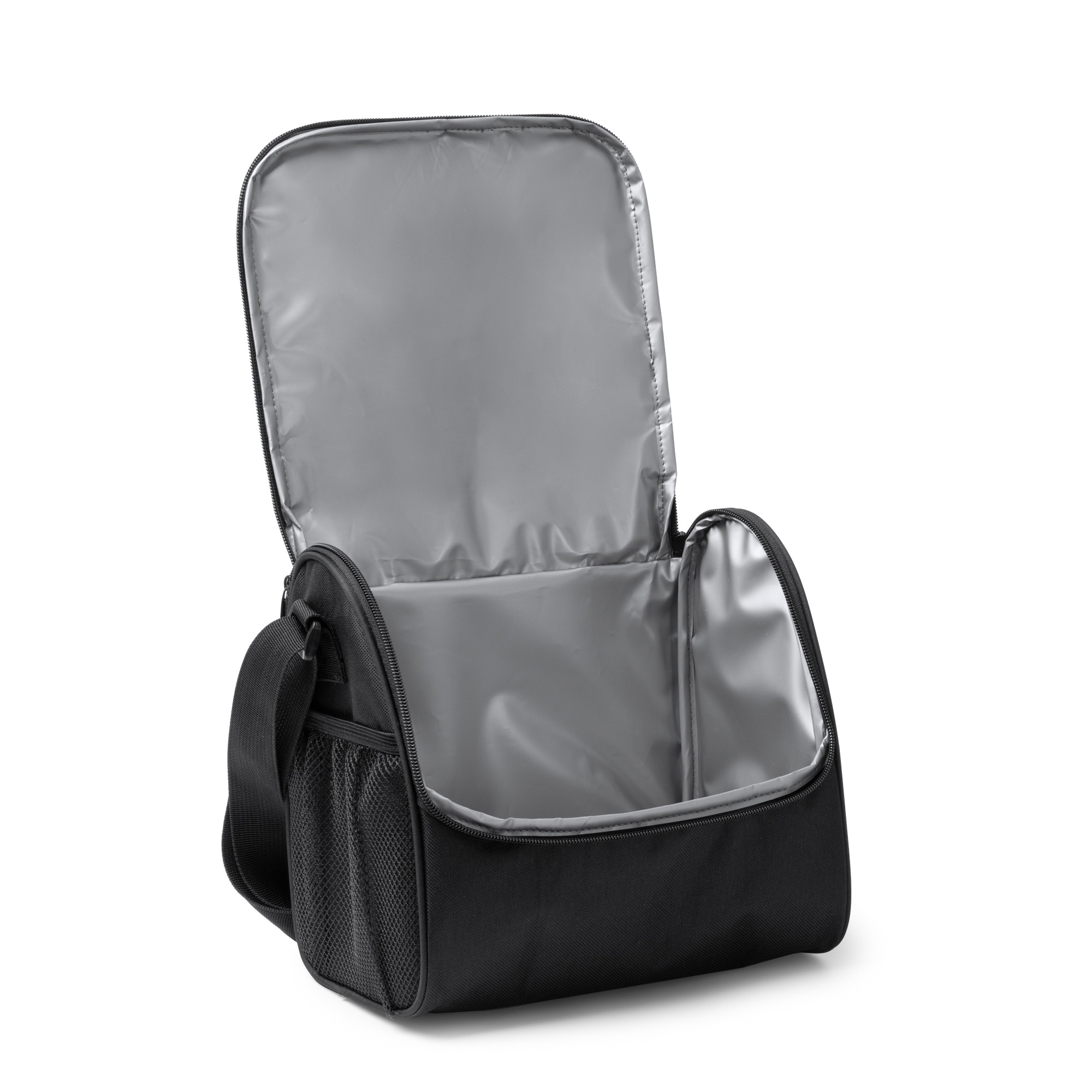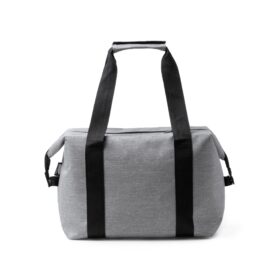 Borsa in RPET 600D isolante. Tasca principale con interno isotermico. Doppia tasca frontale con chiusura a zip e 2 tasche laterali. Tracolla regolabile.