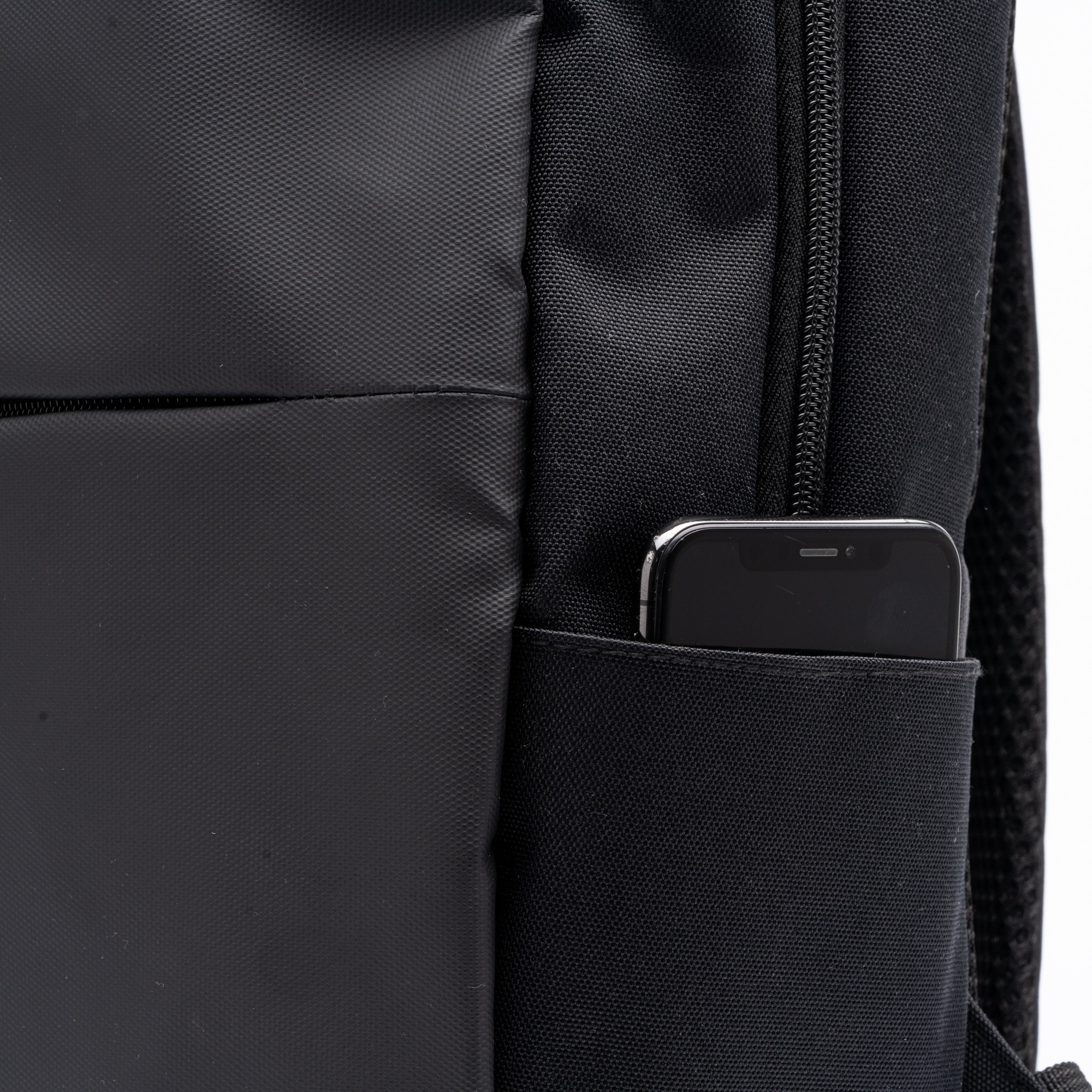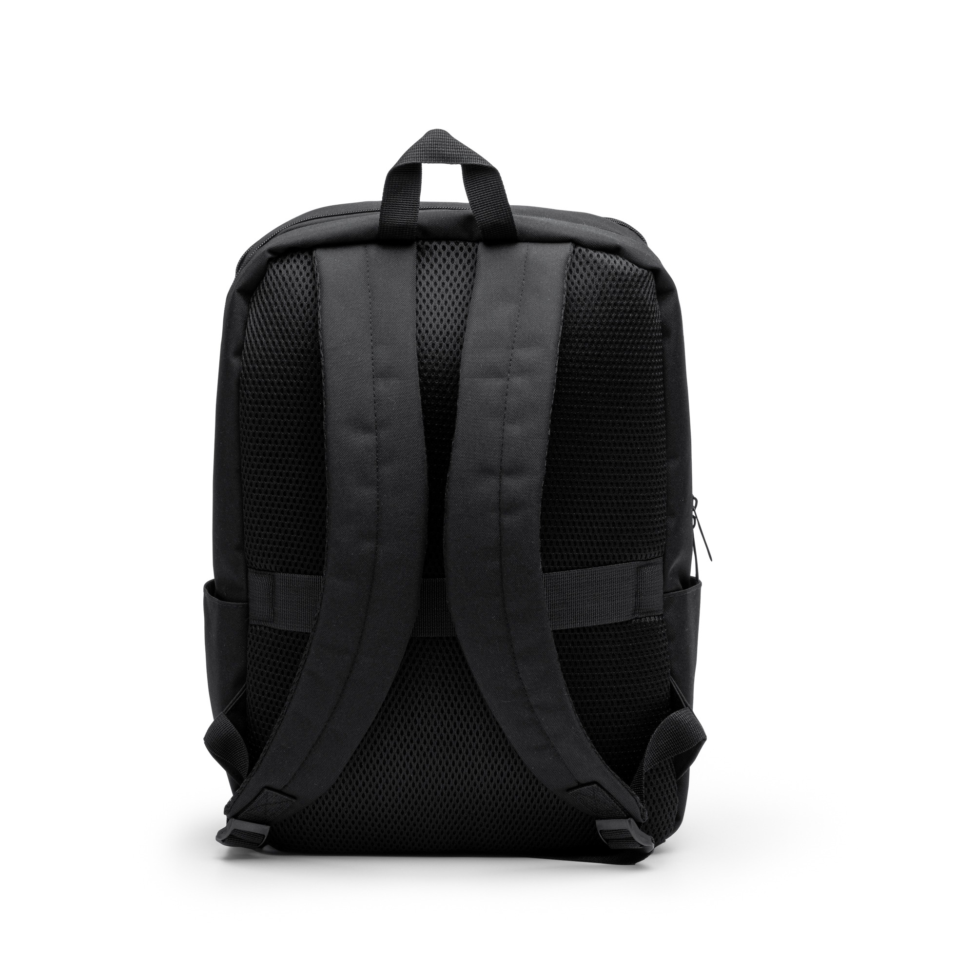 Zaino in pelle PU e poliestere 600D RPET. Scomparto principale con tasca interna imbottita per computer portatile da 15″. Tasca frontale. Schienale e spallacci imbottiti.