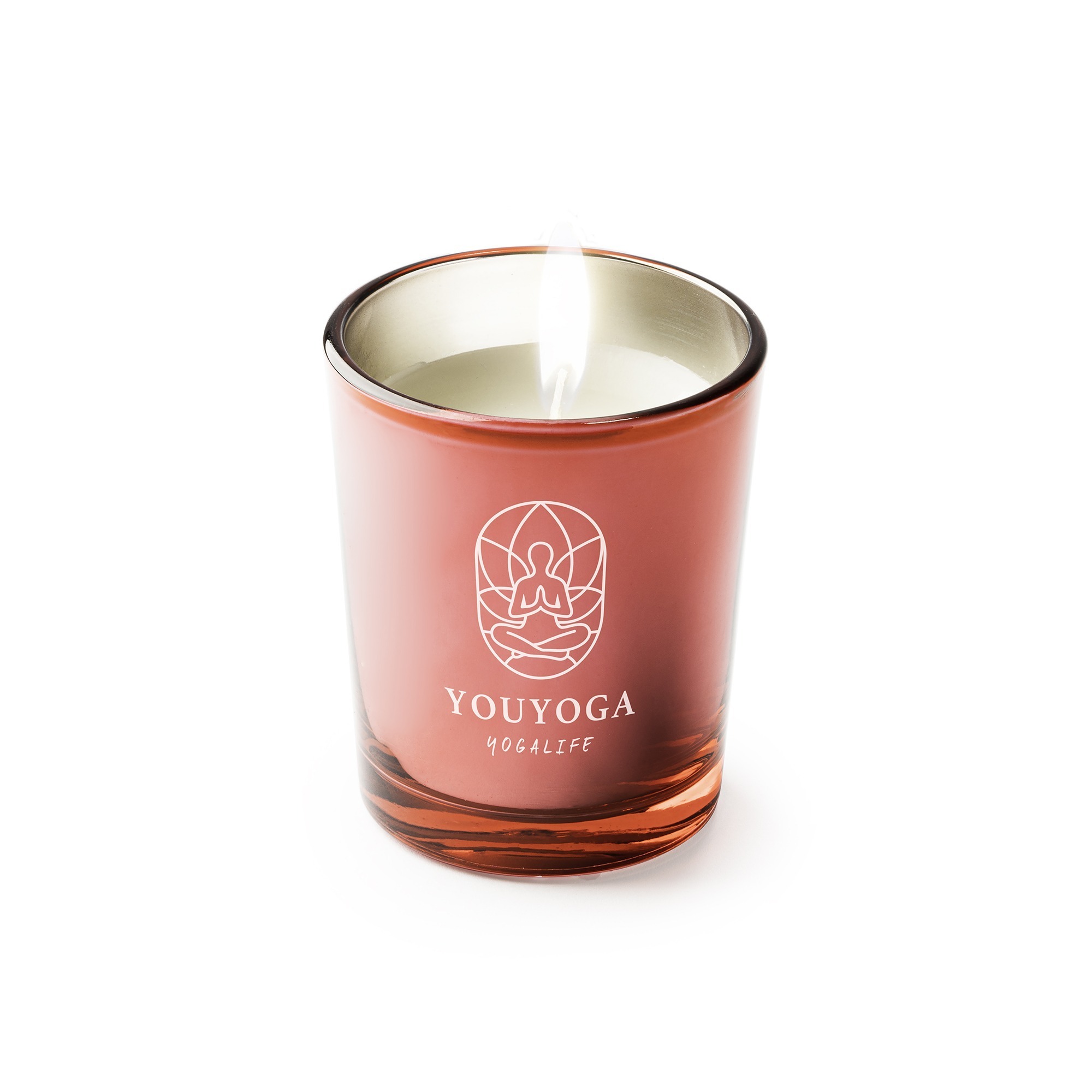 Candela profumata in vaso di vetro colorato con varie fragranze (caffè, pino, lavanda, vaniglia e fragola).