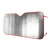 Parasole per auto con bolle su entrambi i lati in alluminio. Due fori in entrambi gli angoli superiori per l’inserimento di ventose da attaccare al finestrino del veicolo. Bordi ed elastici per arrotolarlo a colori. Fornito steso. Vendita in cartoni.
