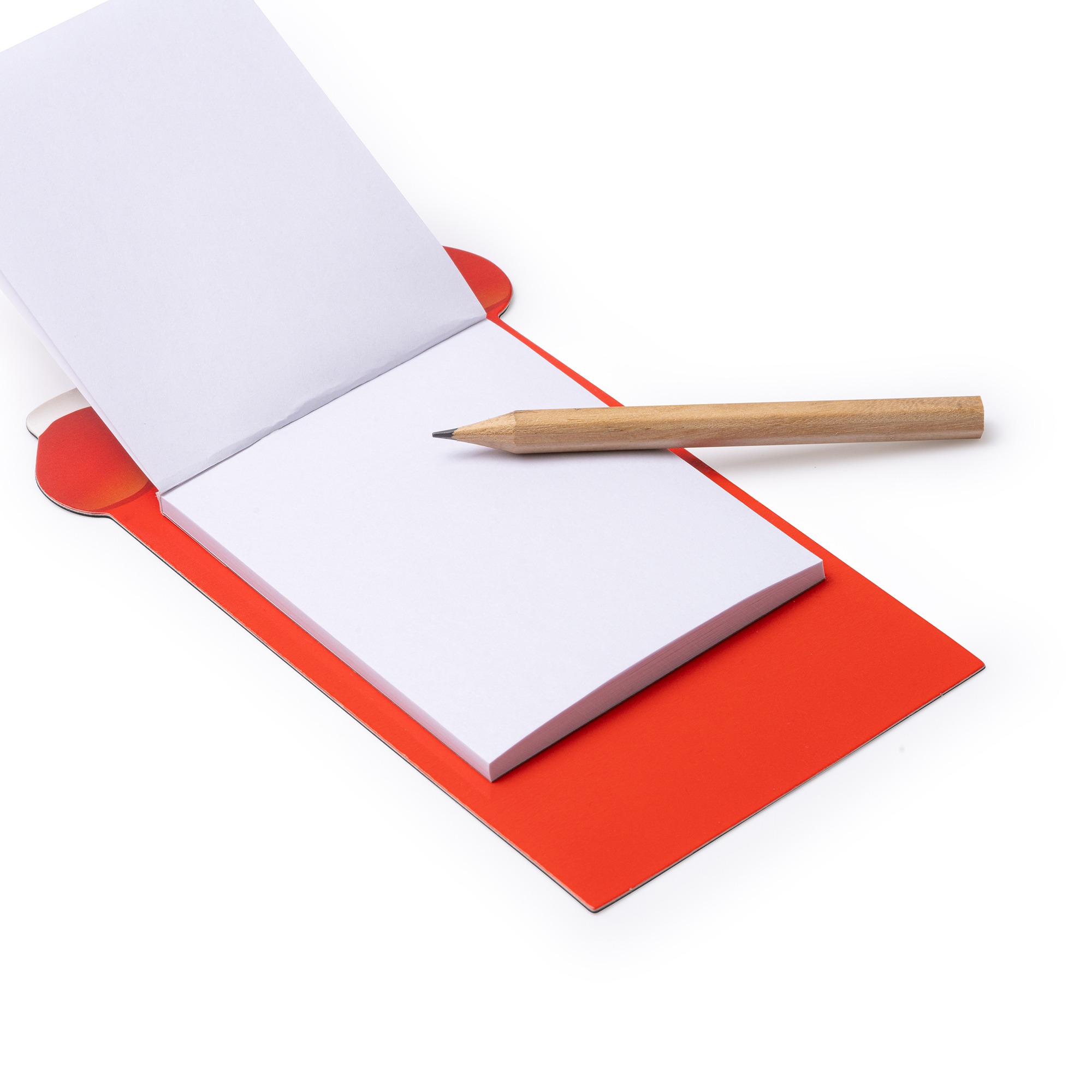Calamita con disegno natalizio di Babbo Natale. Include block notes con 45 fogli lisci e matita di legno. Calamita di colore nero.