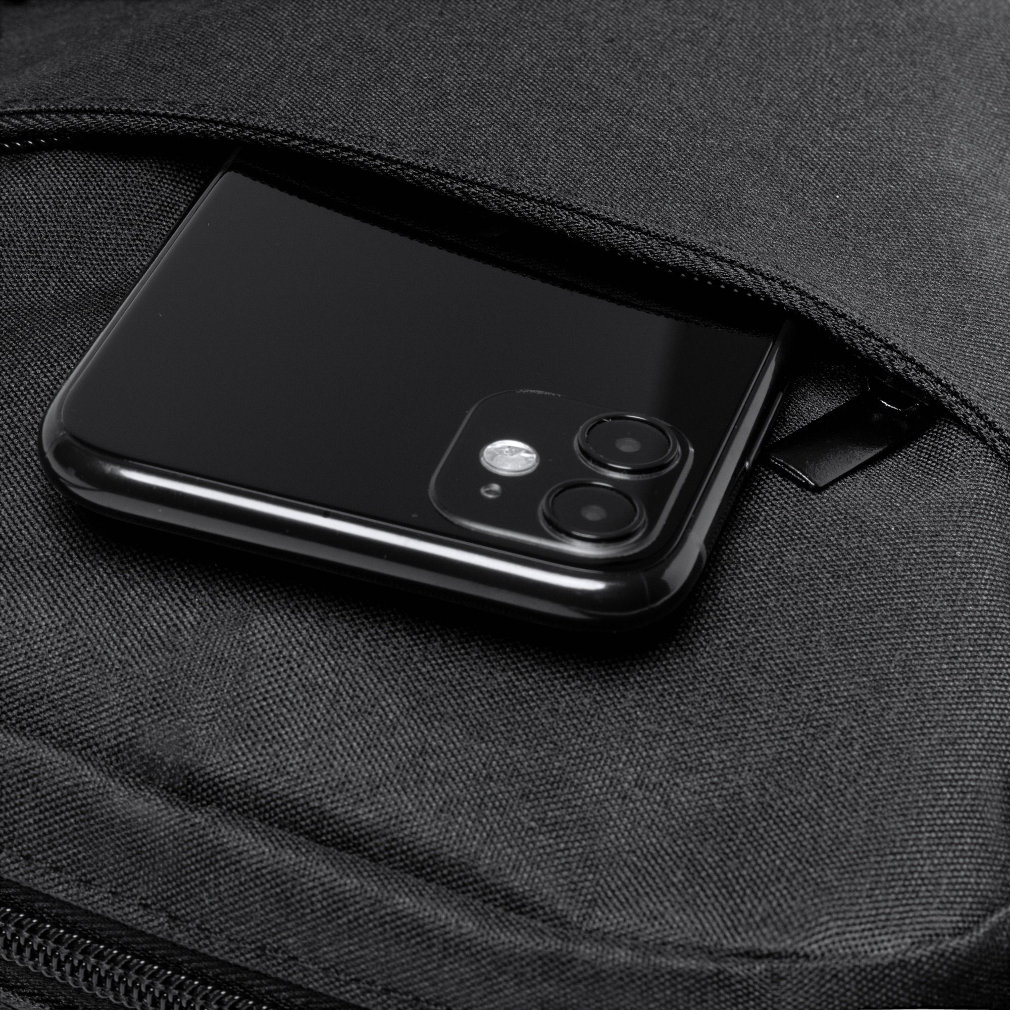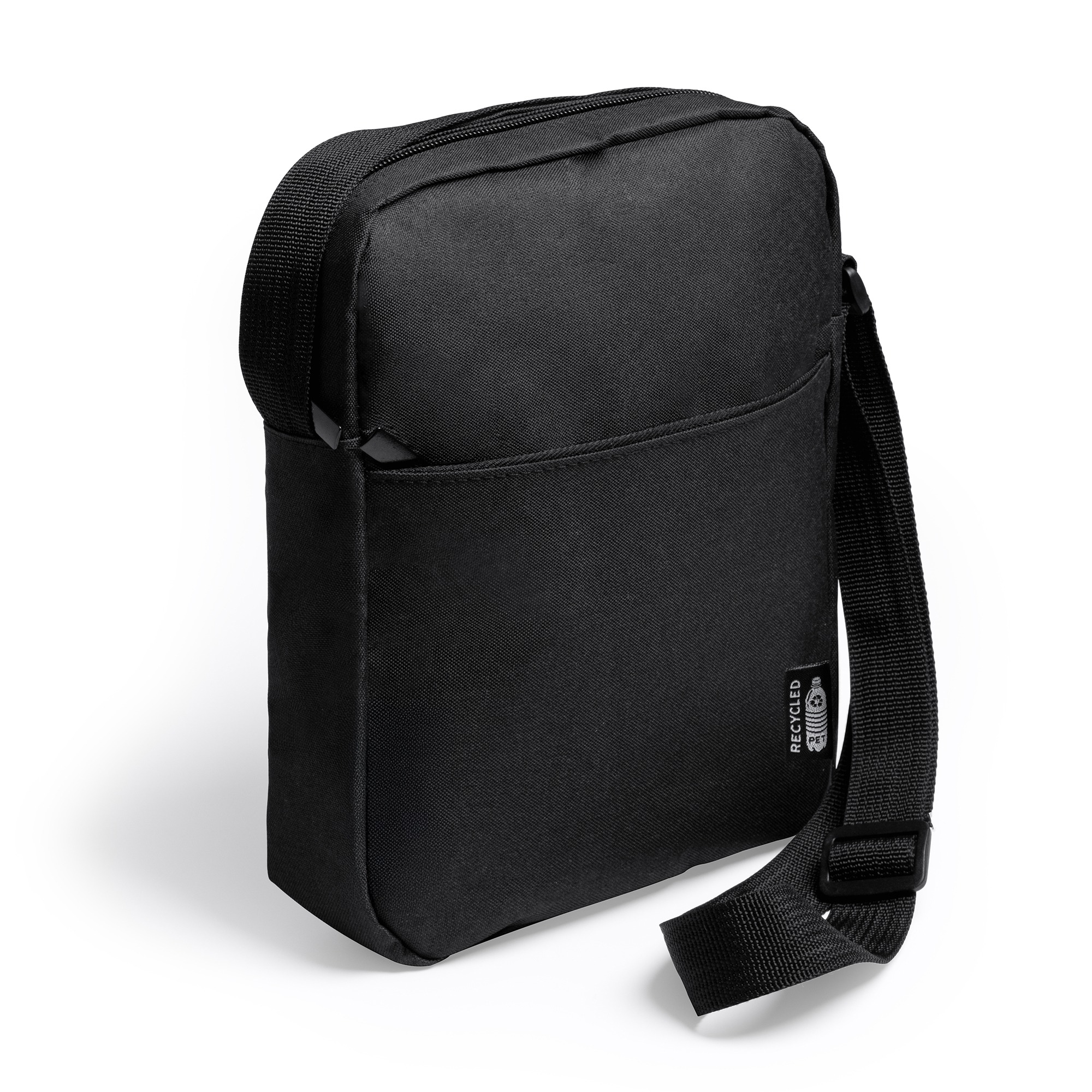 Borsa a tracolla in poliestere RPET. Scomparto principale con 2 tasche interne e una tasca frontale. Cinturino regolabile.