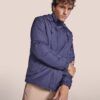 Giubbotto leggero impermeabile con cerniera frontale. Protezione per il mento. Cappuccio removibile con zip e regolatori elastici. Polsini gommati. Tasche laterali con zip e rifinite in tessuto uguale. Tasca interna sul petto a sinistra. Fodera interna in micropile coordinato.