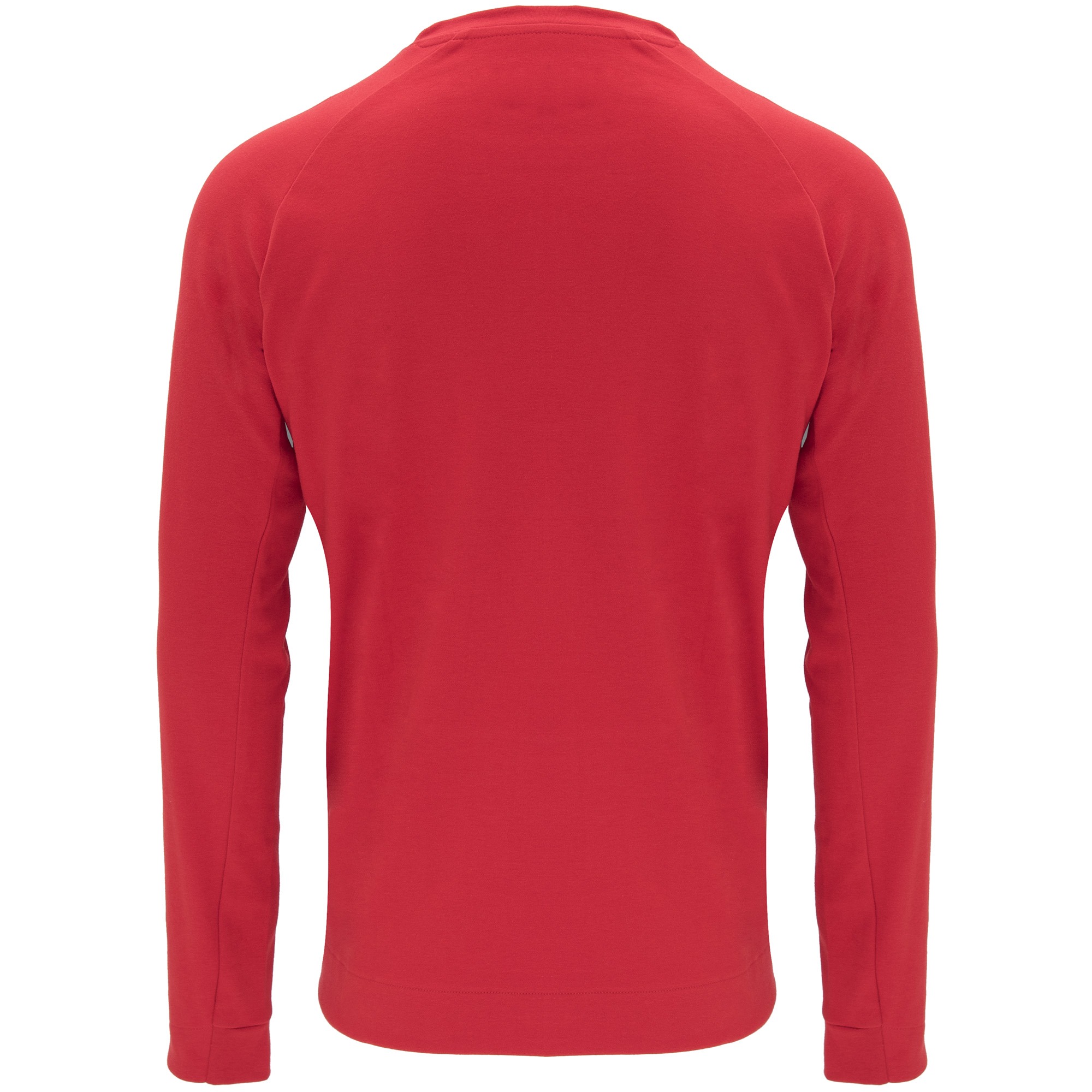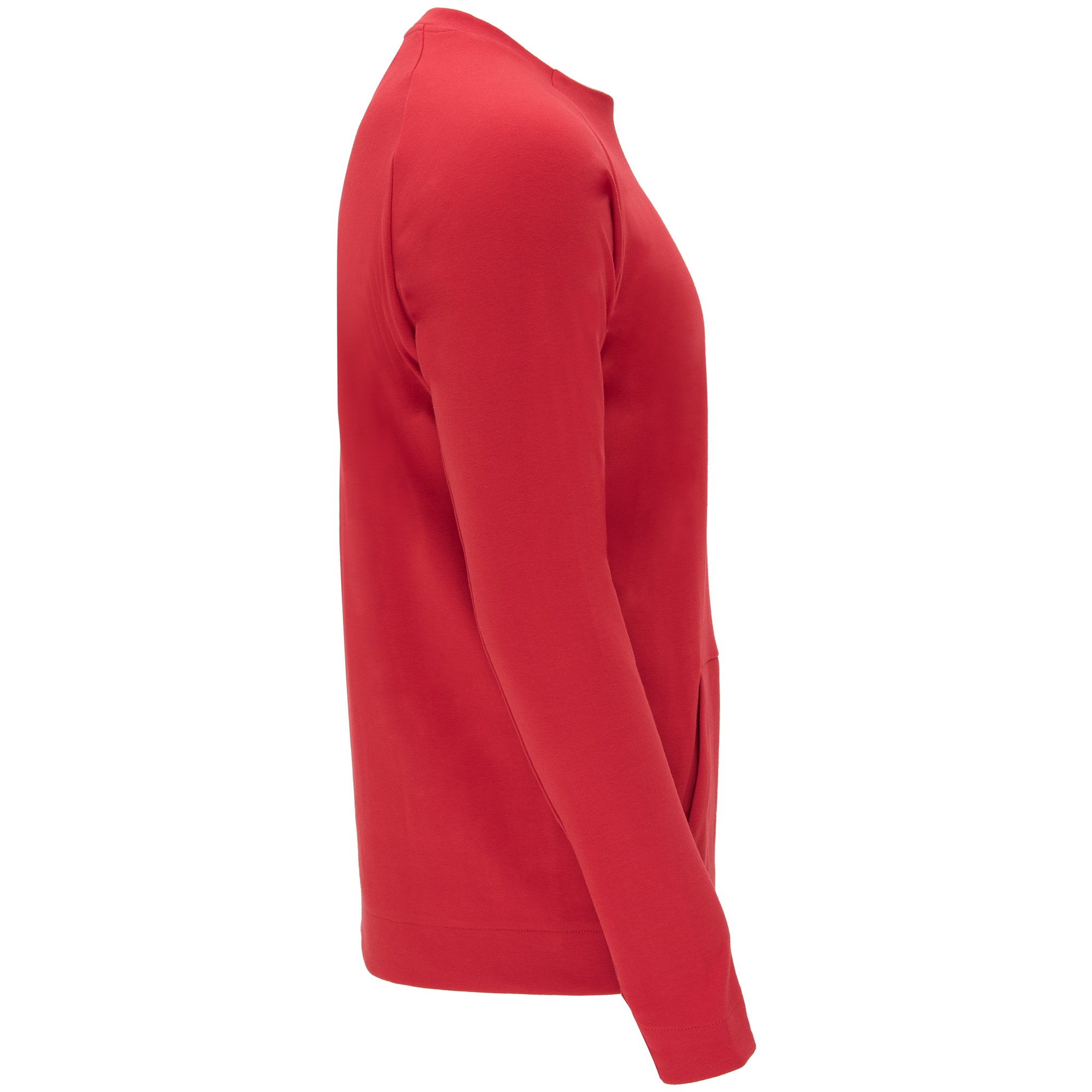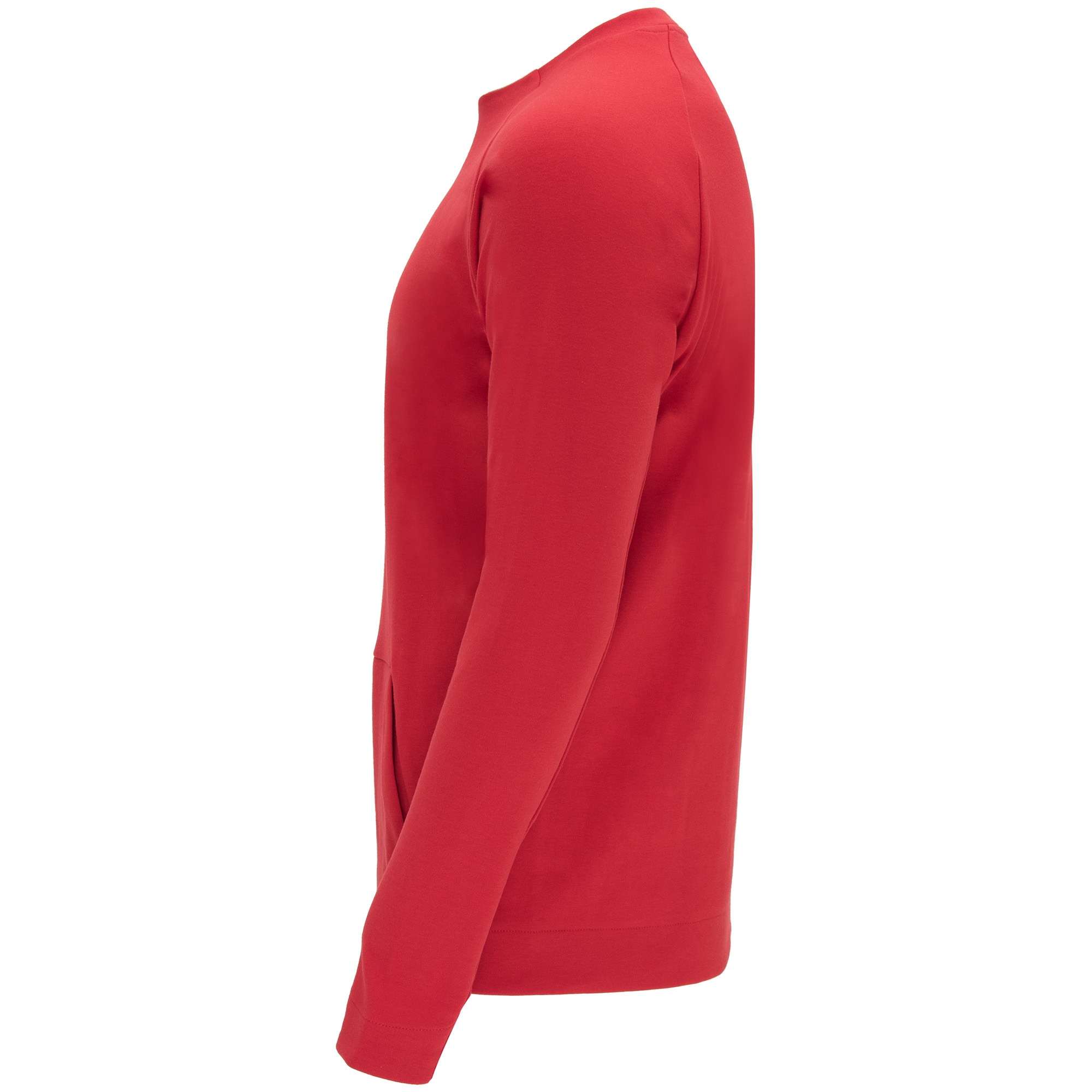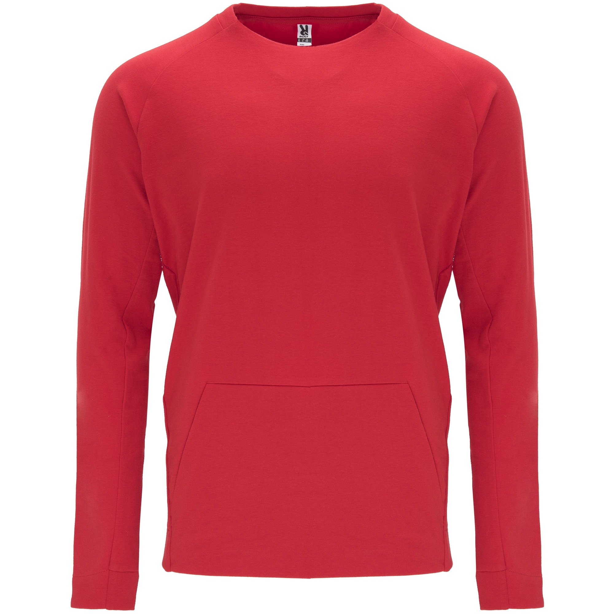 Felpa manica lunga stile ranglan. Parte posteriore del collo e parte inferiore dei polsini in costina 1X1. Tasca a canguro senza cuciture. Cuciture laterali diagonali verso la parte frontale.