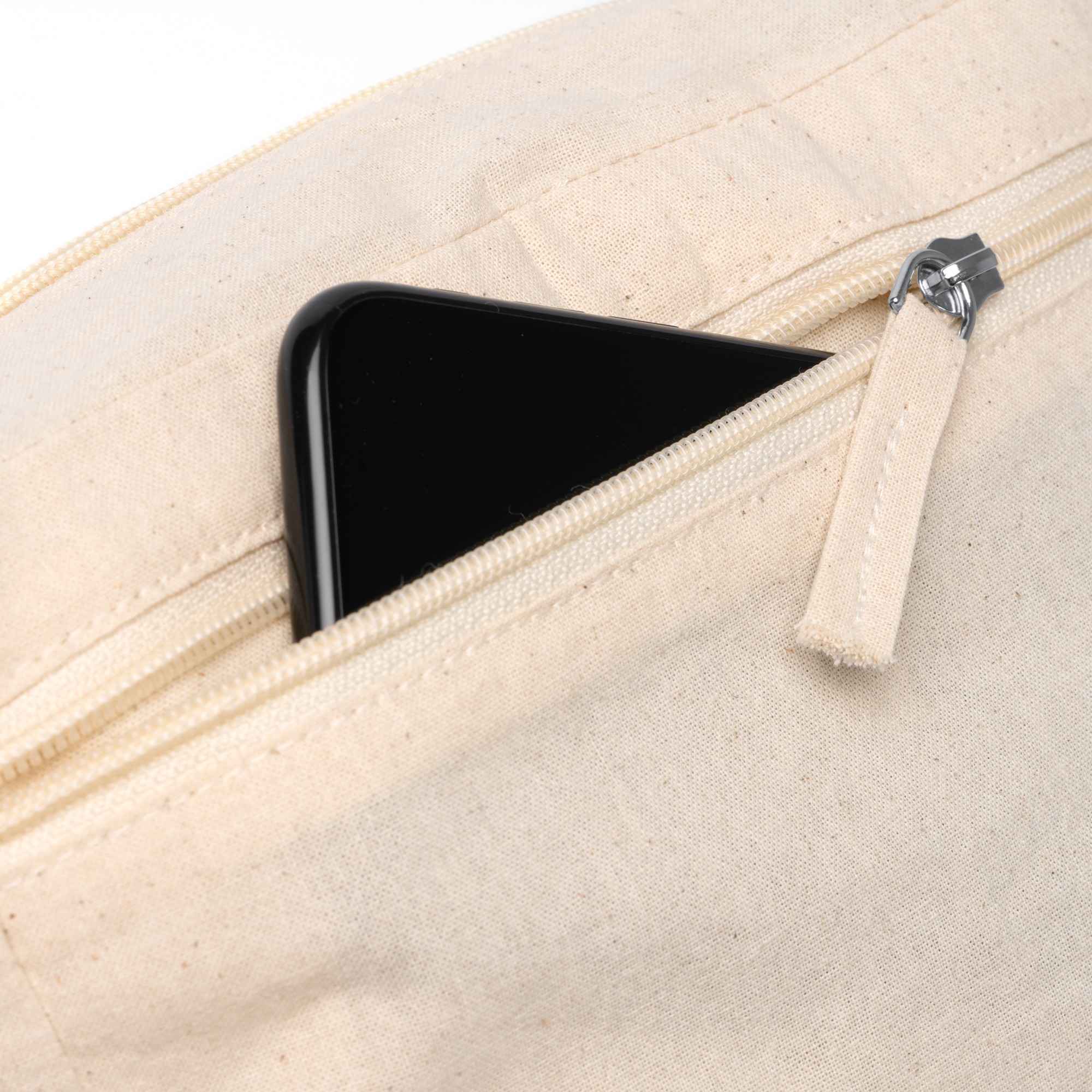 Necessaire 100% cotone 150 g/m² con chiusura a zip. Doppia tasca, principale e laterale.
