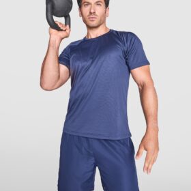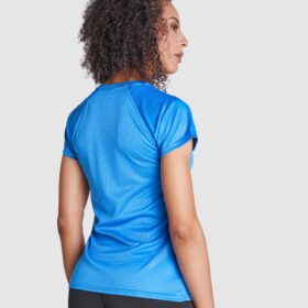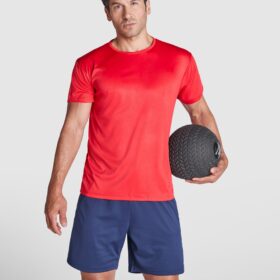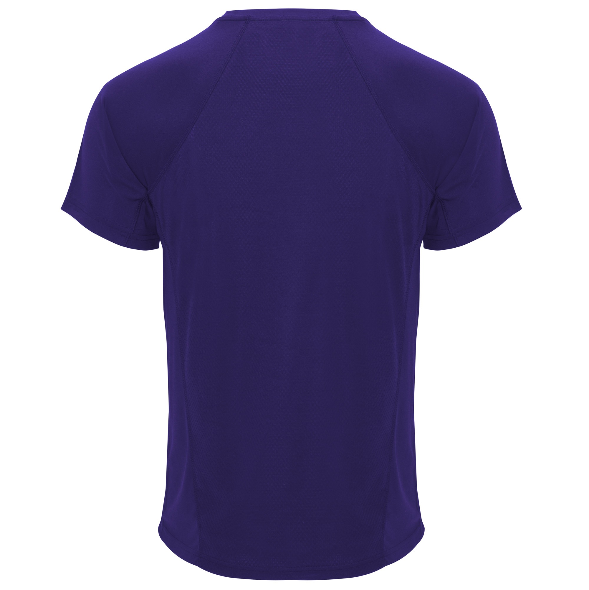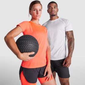 T-shirt tecnica traspirante unisex con maniche raglan. Combinazione di tessuti. Scollo rotondo in tessuto coordinato. Stesso rivestimento delle cuciture in tessuto giallo fluo.