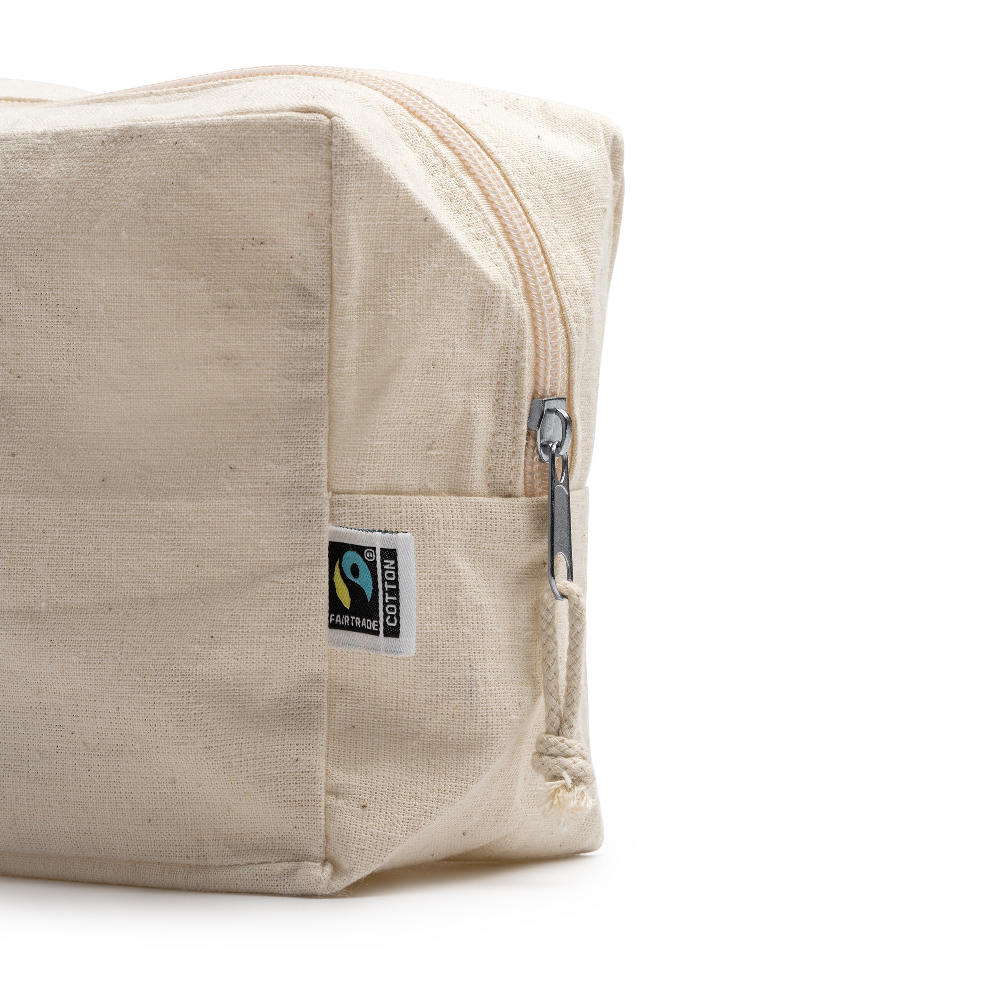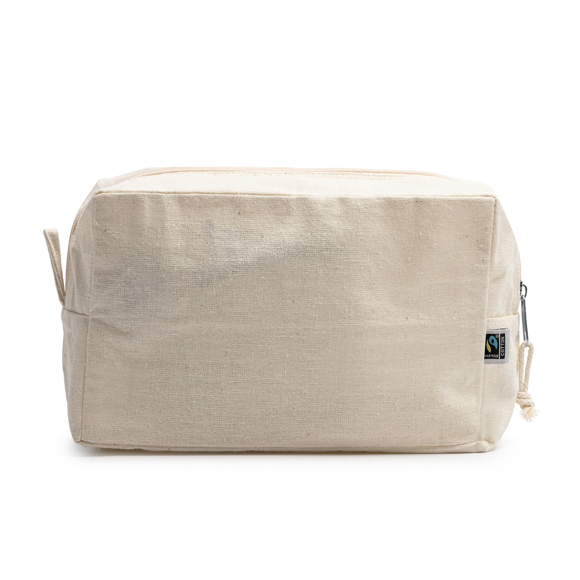 Borsa da toilette multifunzionale in 100% cotone equosolidale (180 g/m²). Tasca principale con cerniera e tiretto abbinati.