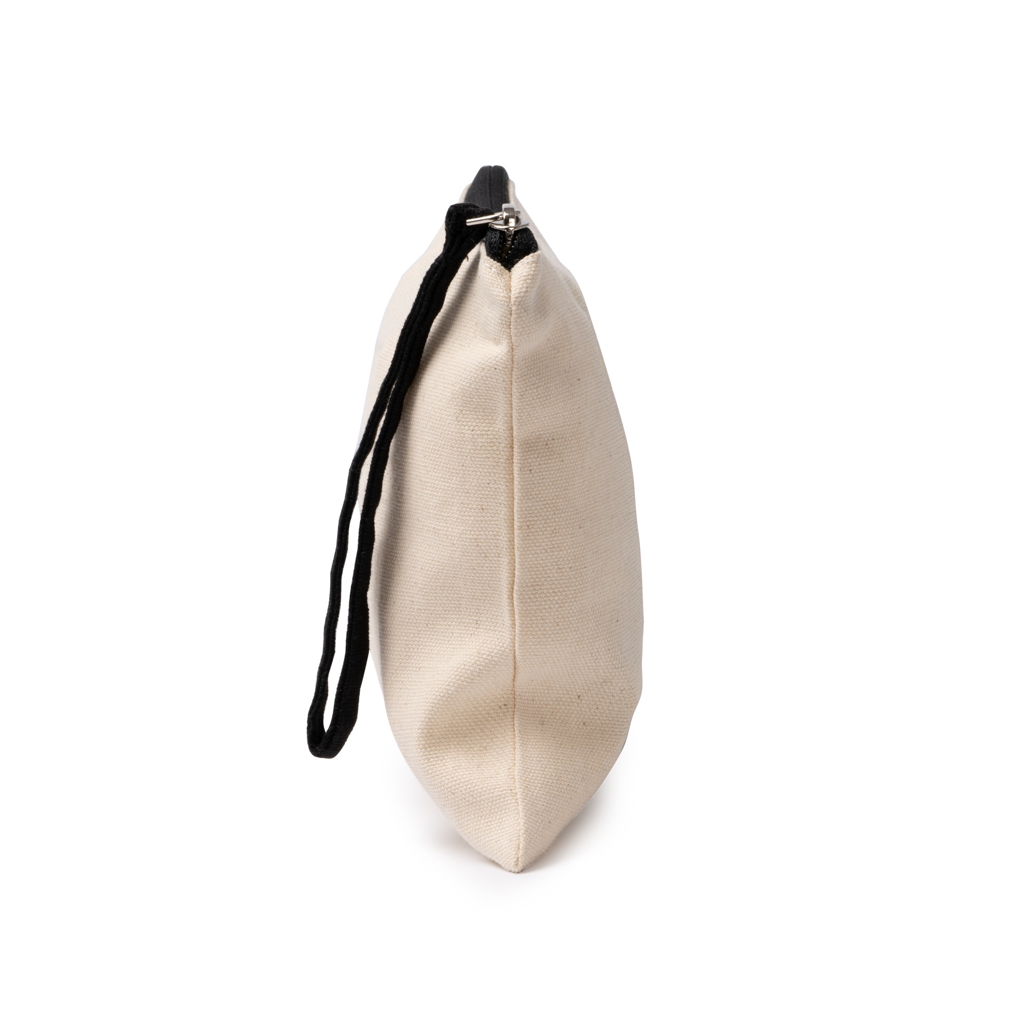 Necessaire 100% cotone 260 g/m² con chiusura a zip e maniglia portaoggetti colorata.
