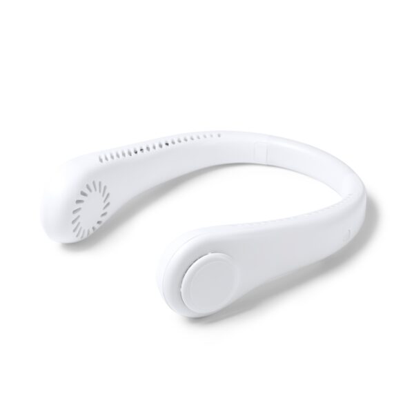 Ventilatore da collo in ABS a tre velocità. Include cavo di tipo C. Confezione in scatola con design ecologico