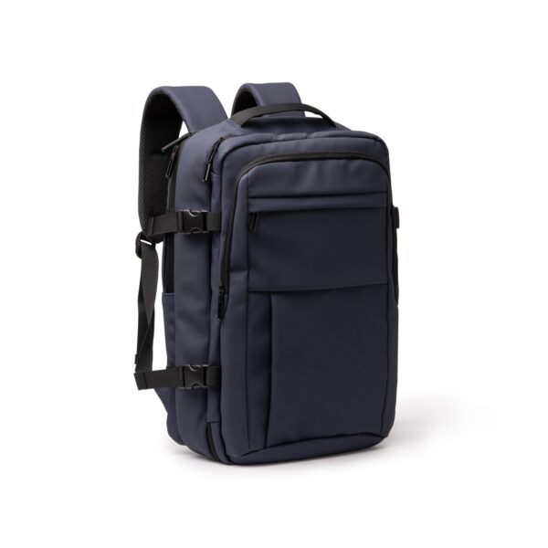 Pratico zaino espandibile in pelle PU. Offre grande capienza e comfort, grazie allo schienale e ai manici imbottiti e alla pratica cinghia per trolley. Lo scomparto principale include un divisorio in mesh con cerniera e diverse tasche interne più piccole per riporre piccoli oggetti. Presenta uno scomparto anteriore con piccole tasche e una tracolla con portachiavi integrato per non perdere le chiavi. Dispone di una tasca anteriore per trasportare oggetti più piccoli, oltre a una tasca posteriore con doppio scomparto imbottito per trasportare laptop fino a 15″ insieme a un altro dispositivo elettronico. Include moschettoni laterali che consentono di regolarne le dimensioni e un’apertura con cerniera che consente di espanderlo. Include un cavo per collegare una batteria esterna su un lato. I pannelli sono imbottiti per proteggere i tuoi oggetti personali e le bretelle sono regolabili.