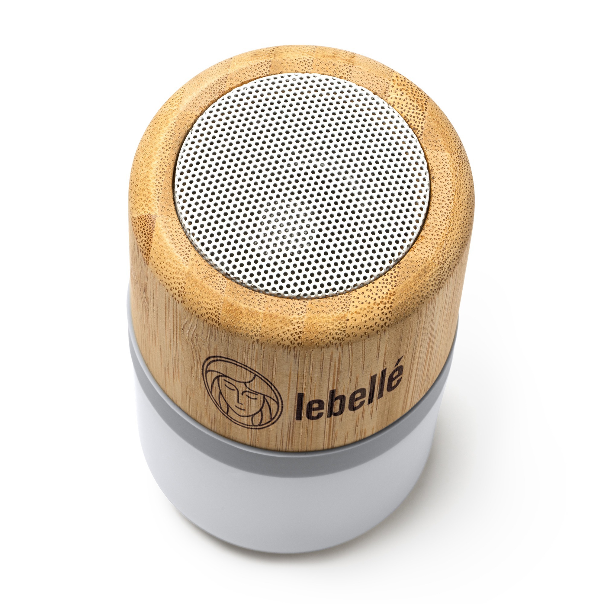 Fantastica cassa wireless con corpo in bambù e luce LED multicolore con 4 modalità. 3W di potenza e batteria ricaricabile. Cavo di ricarica incluso.