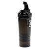 Shaker in PP con paletta in acciaio inox 304. Dispenser in PP con scomparti per gli integratori. Capacità: 800 ml. Include moschettone. Confezione in scatola di design.