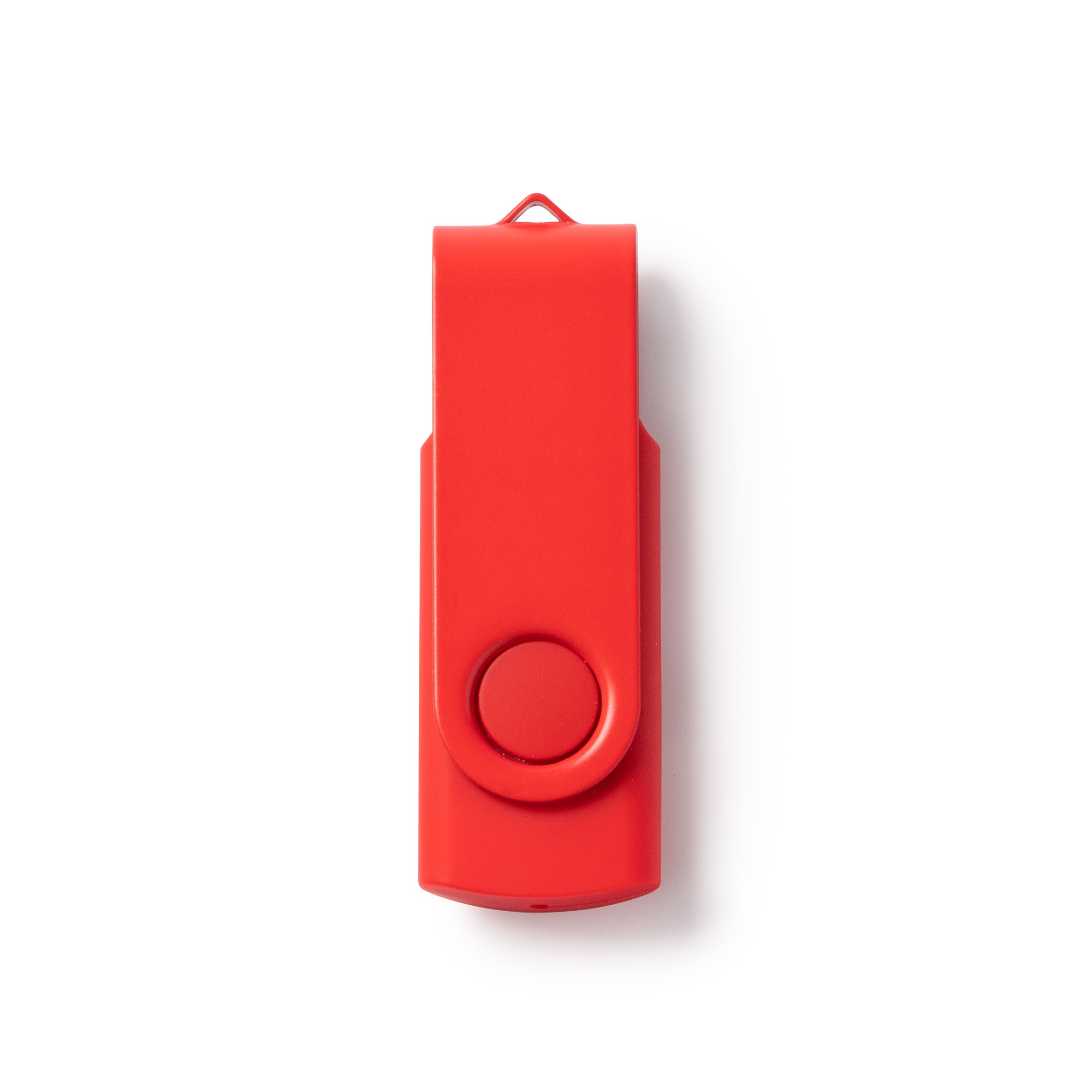 Chiavetta USB con struttura principale in ABS e clip girevole abbinata. Confezione in scatola con finestrella.