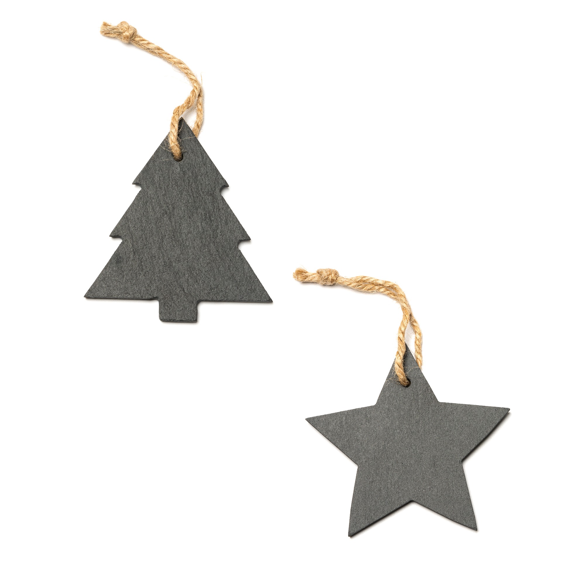 Decorazione natalizia in ardesia in due design. Laccetto per appendere incluso.