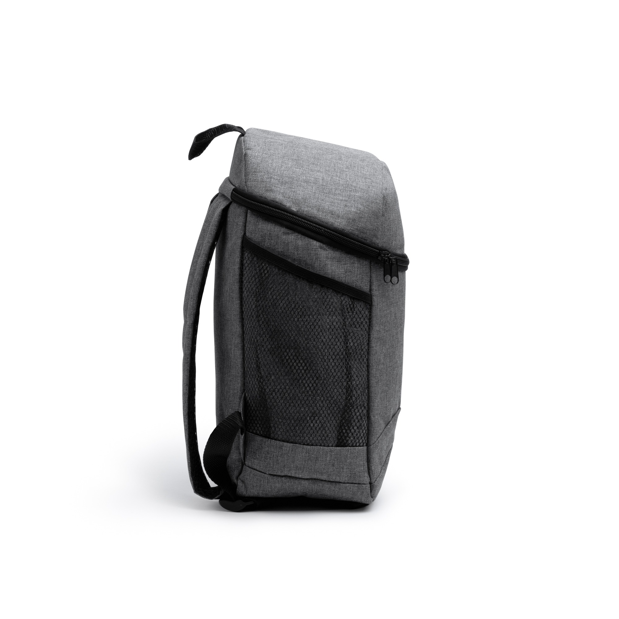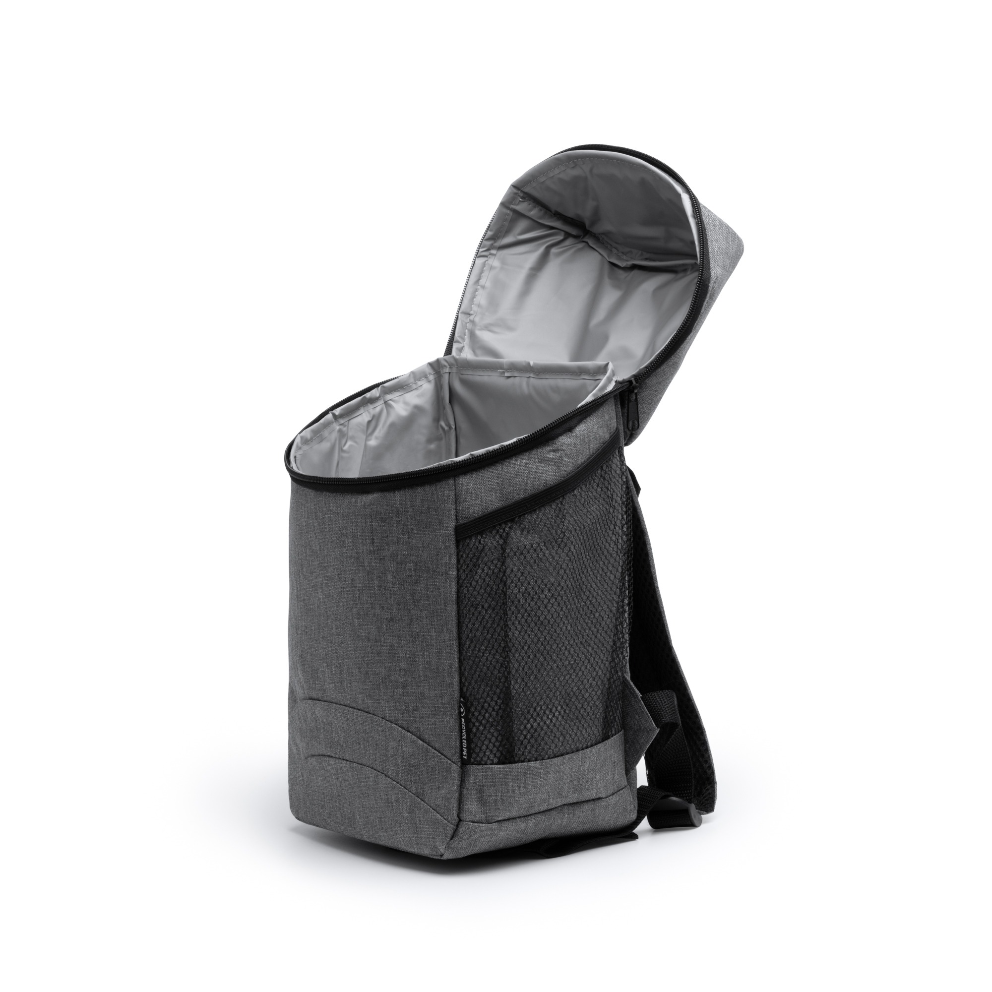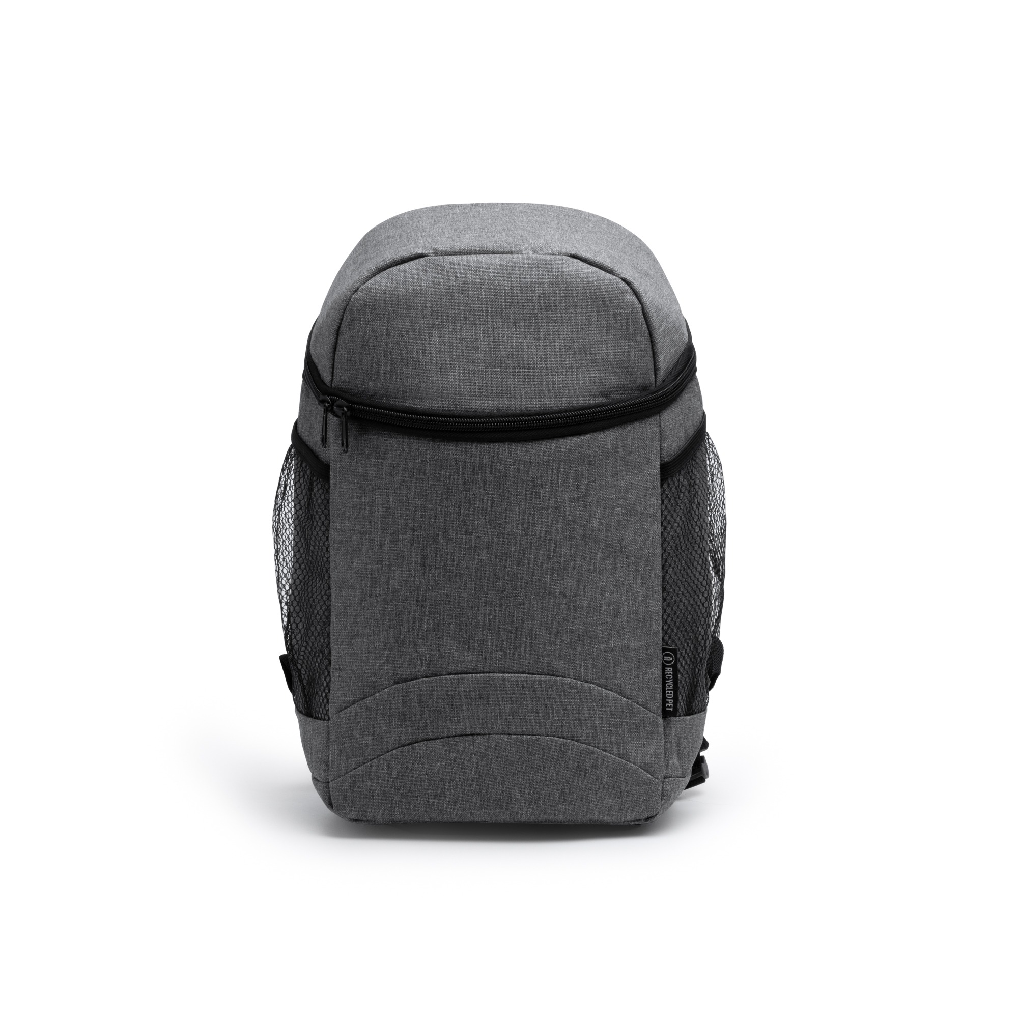 Zaino termico in poliestere RPET con design mélange. Ampio scomparto principale con fodera isotermica.
