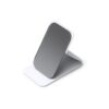 Specchio pieghevole in morbido PU con supporto. Il coperchio può essere regolato per posizionare lo specchio a diverse altezze una volta chiuso.