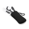 Set di posate pieghevoli in acciaio inox con pratica custodia in neoprene. Include forchetta, coltello e cucchiaio.
