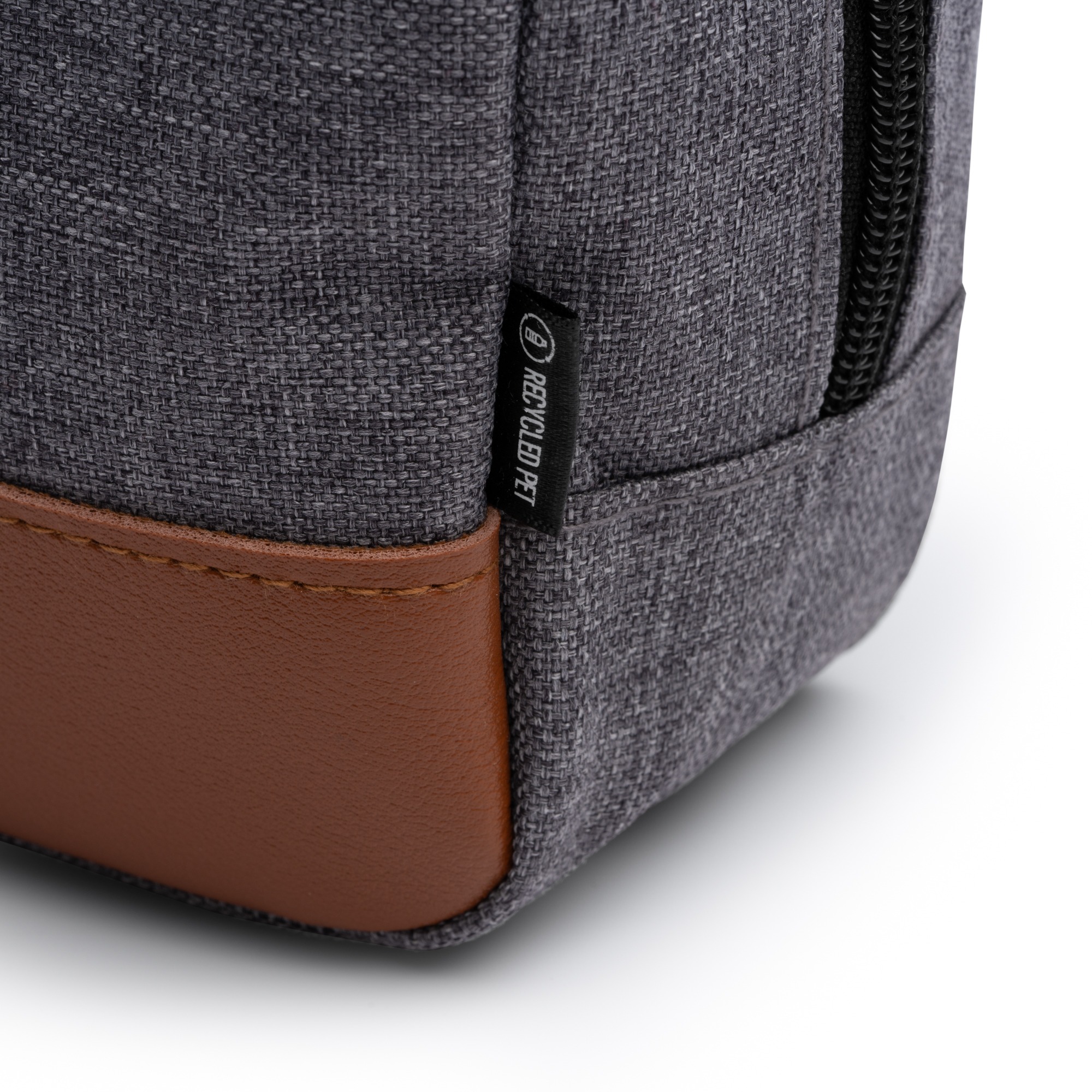 Borsa da toilette in poliestere riciclato RPET con dettagli in pelle PU, ideale per la stampa. Include una maniglia per il trasporto, che unisce sostenibilità e stile. Portate con voi i vostri effetti personali in modo comodo ed elegante.