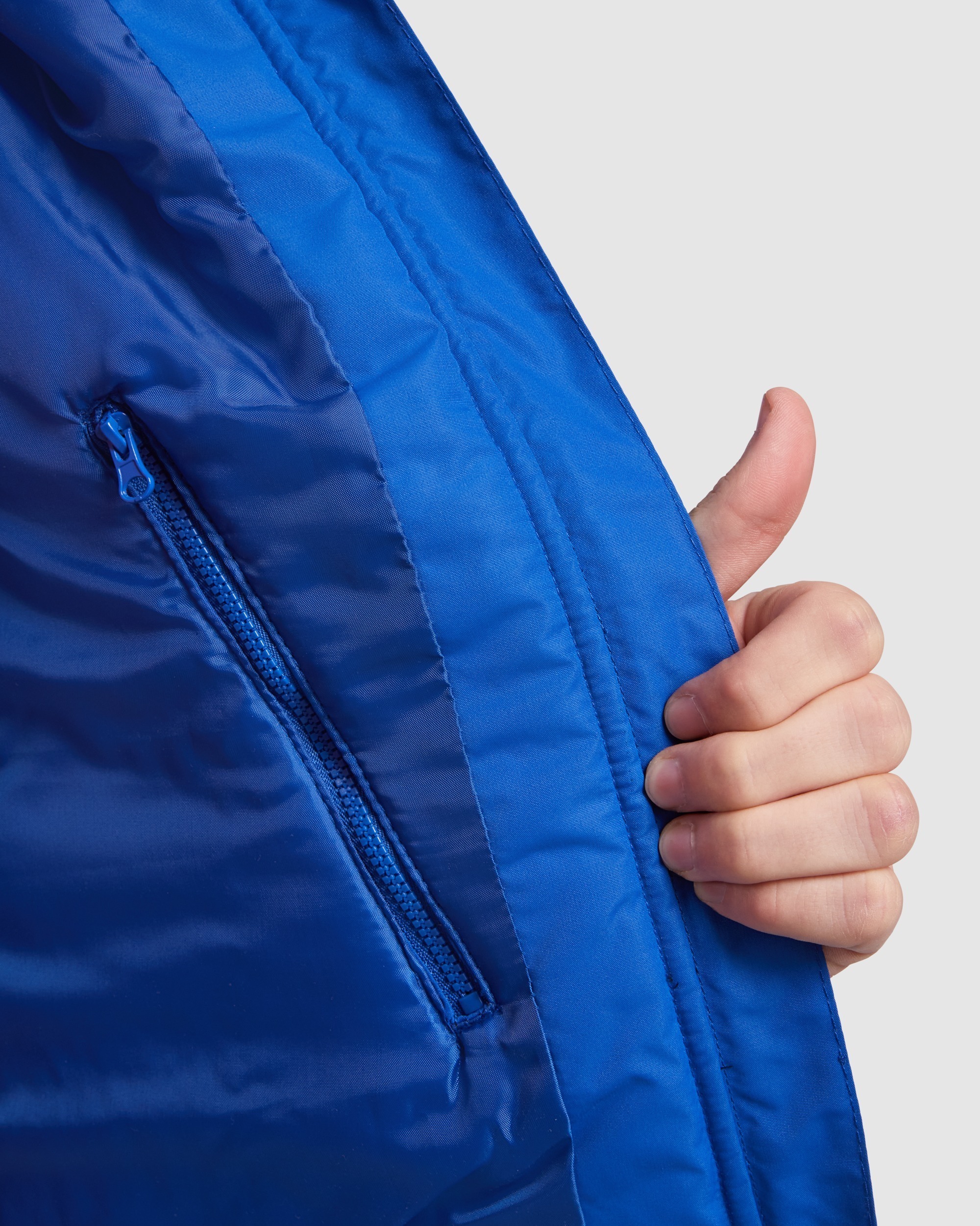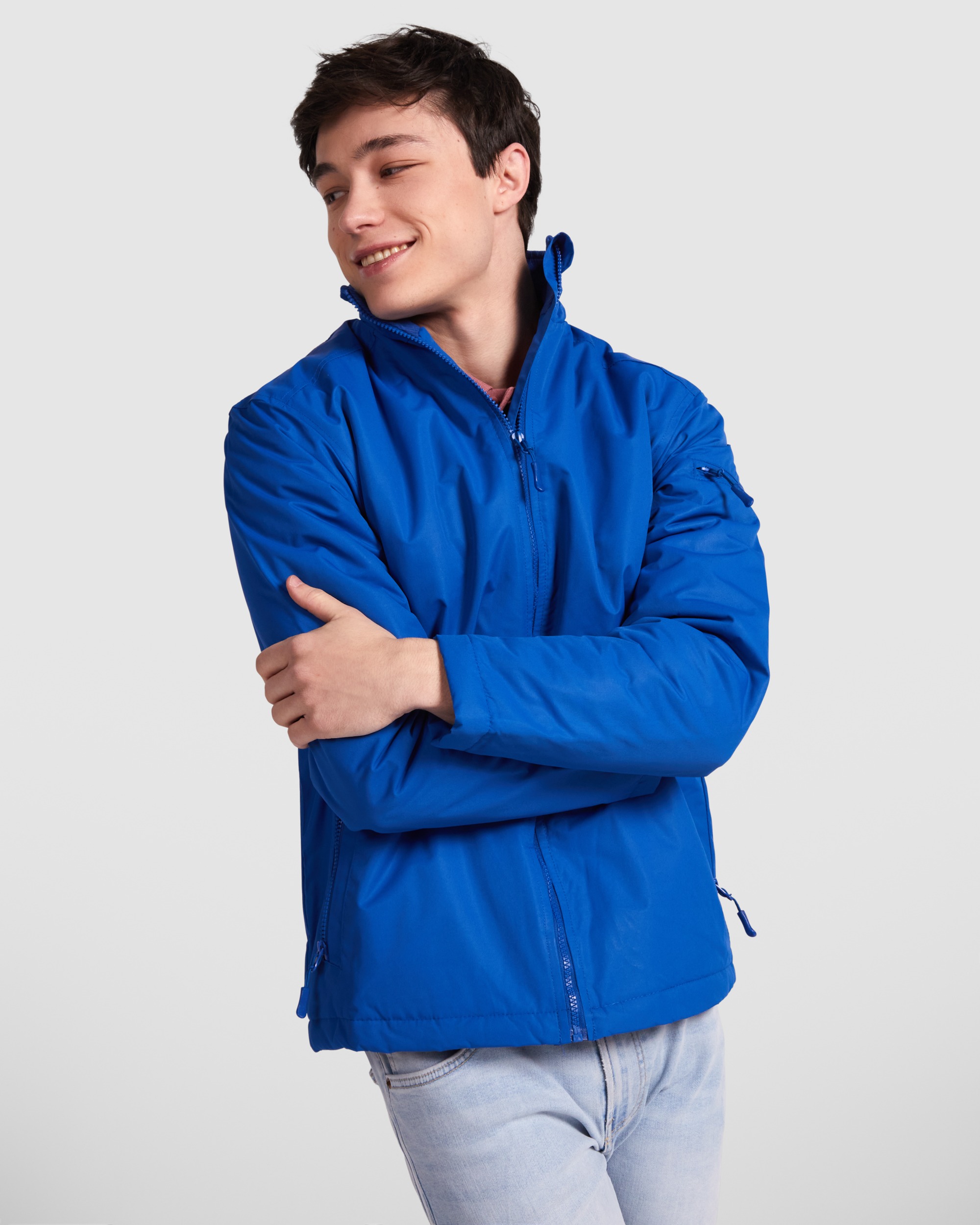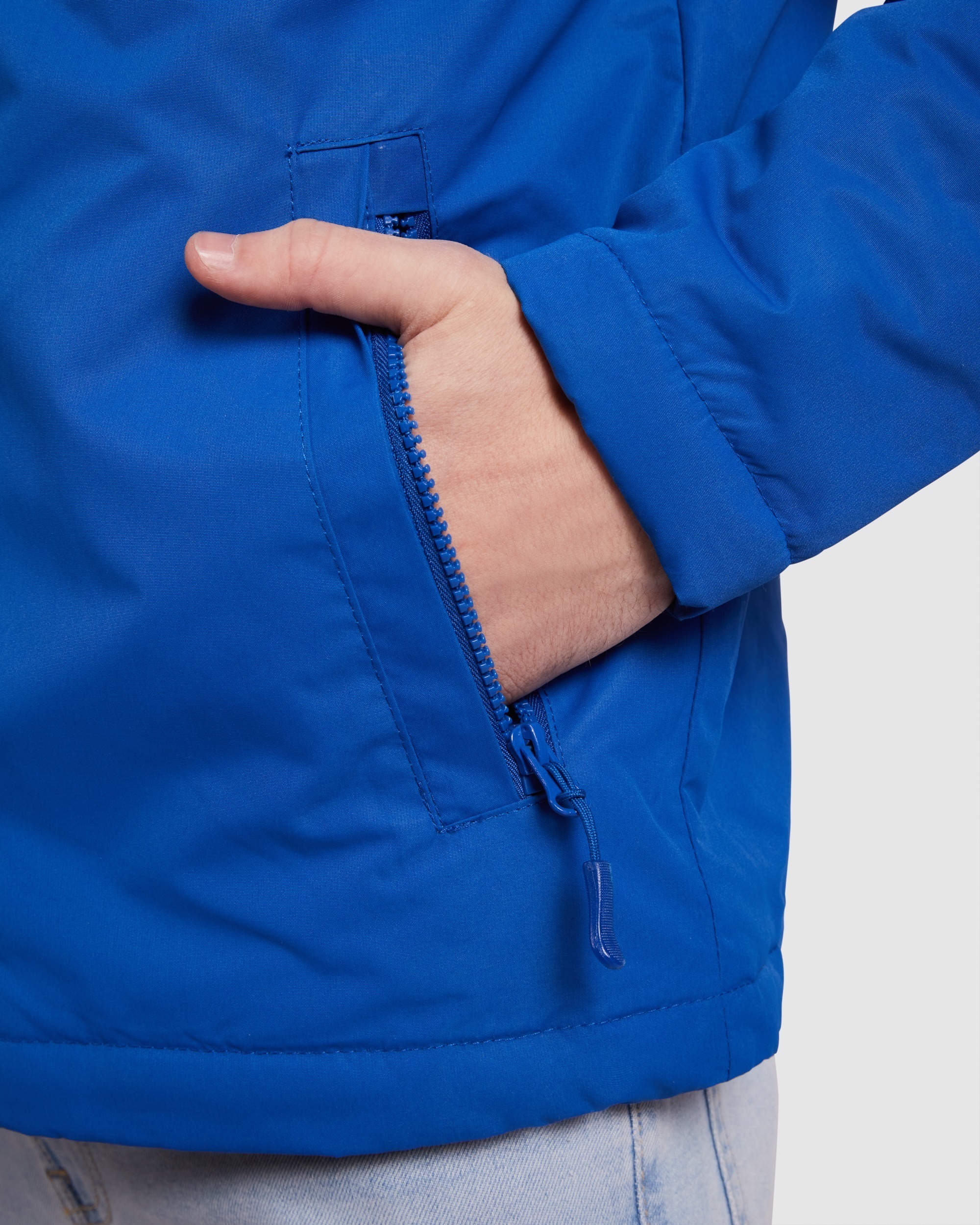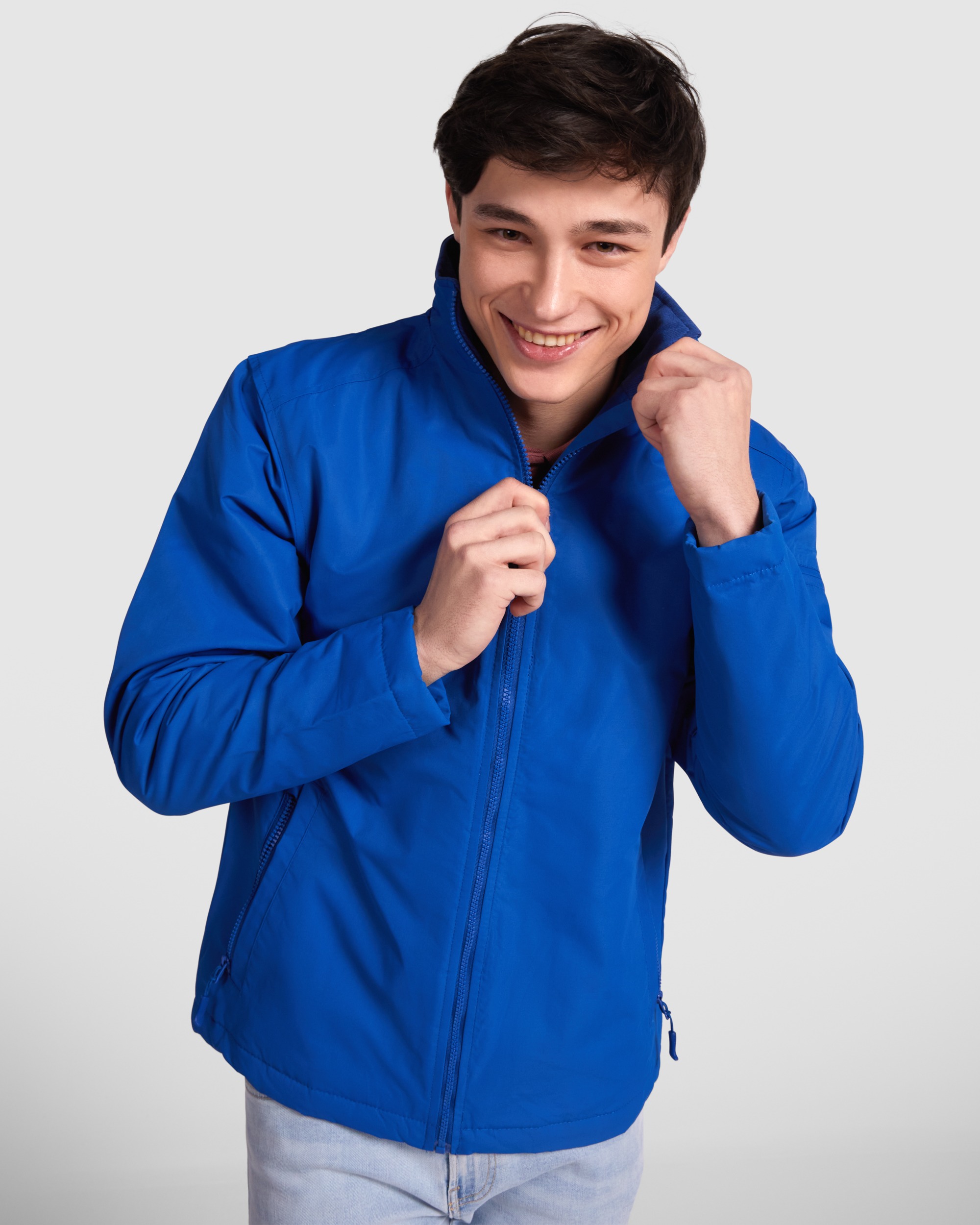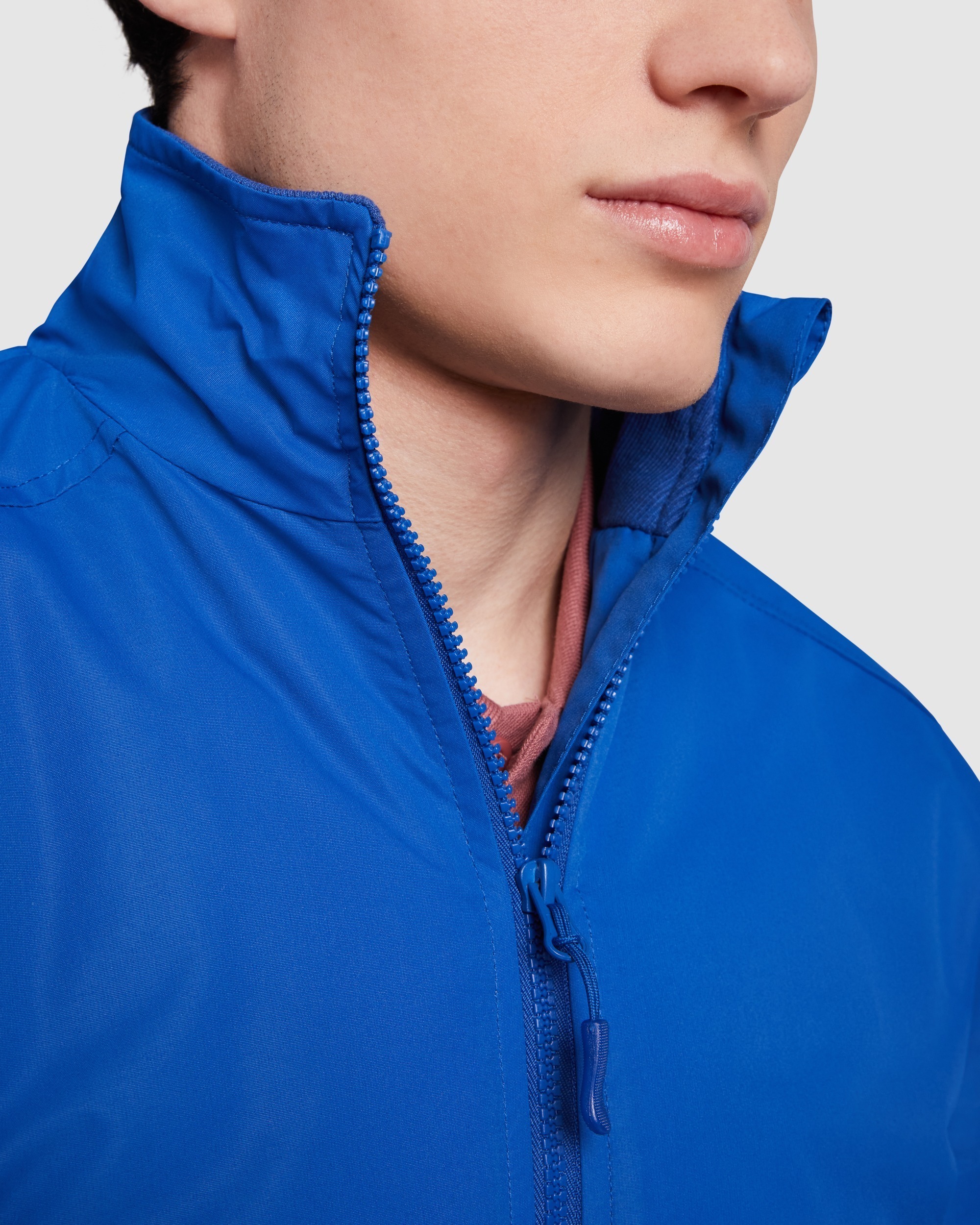 Giacca imbottita in tessuto molto resistente. Collo alto con interno foderato a costine 2×2.