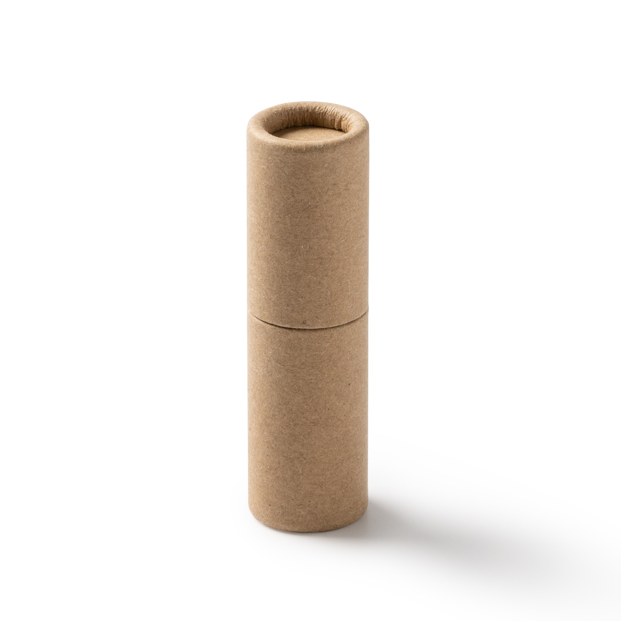 Chiavetta USB cilindrica in cartone riciclato. Confezione in scatola dal design ecologico.