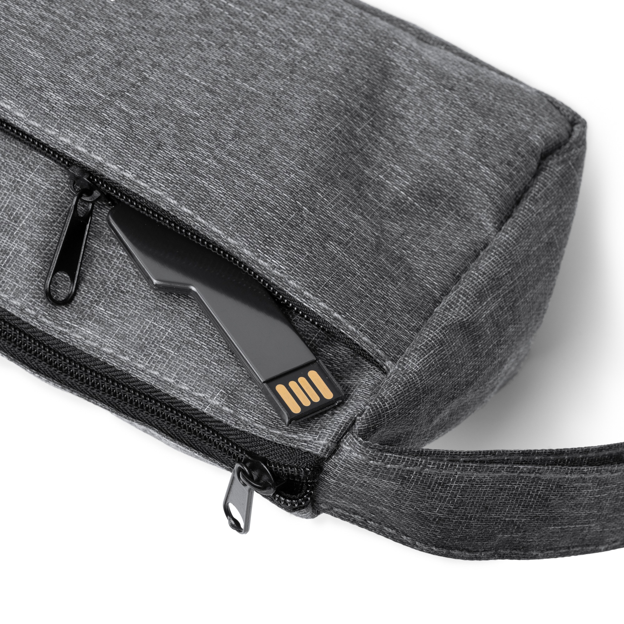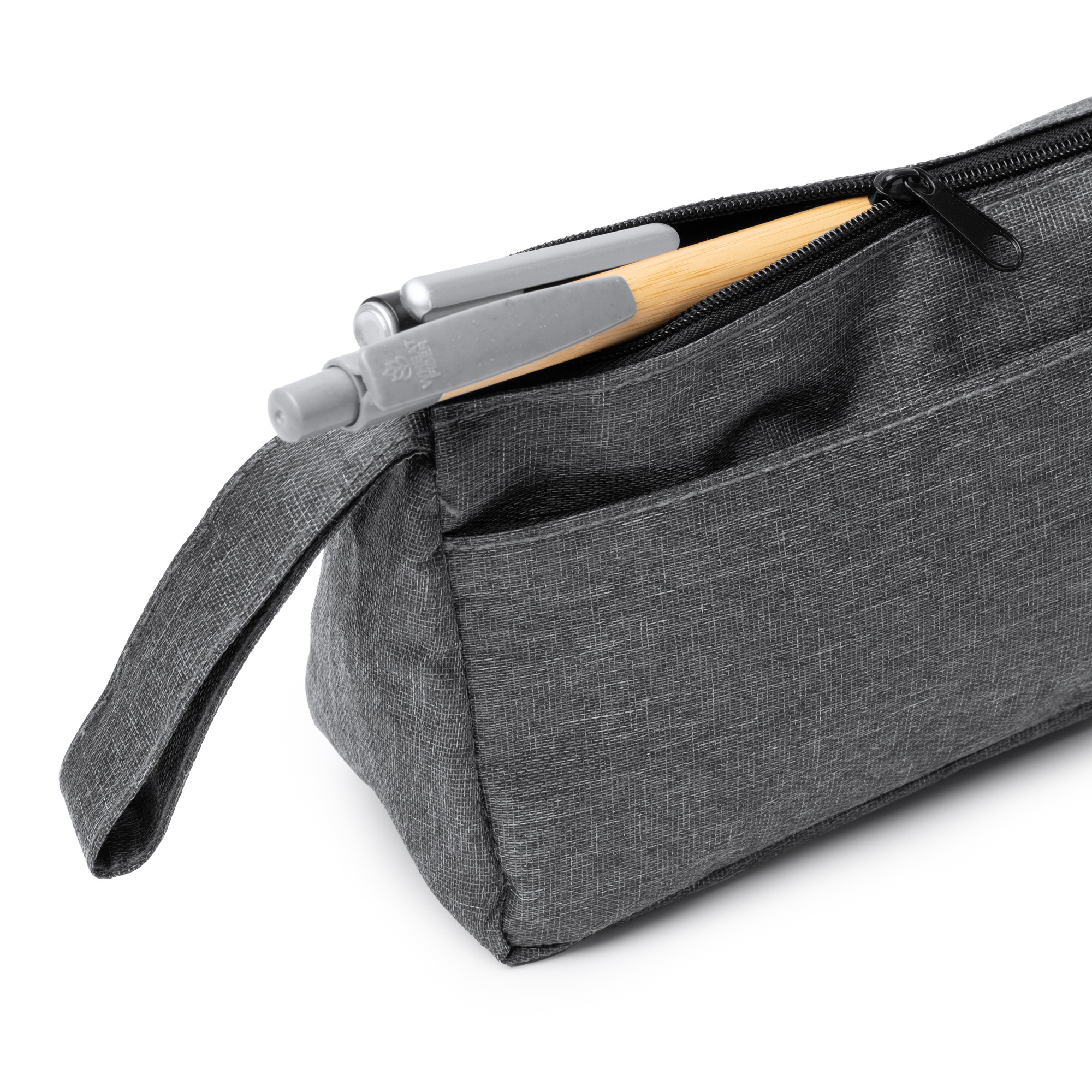 Necessaire in RPET 300D. Scomparto principale e tasca esterna con chiusura a zip. Include una pratica maniglia per il trasporto.