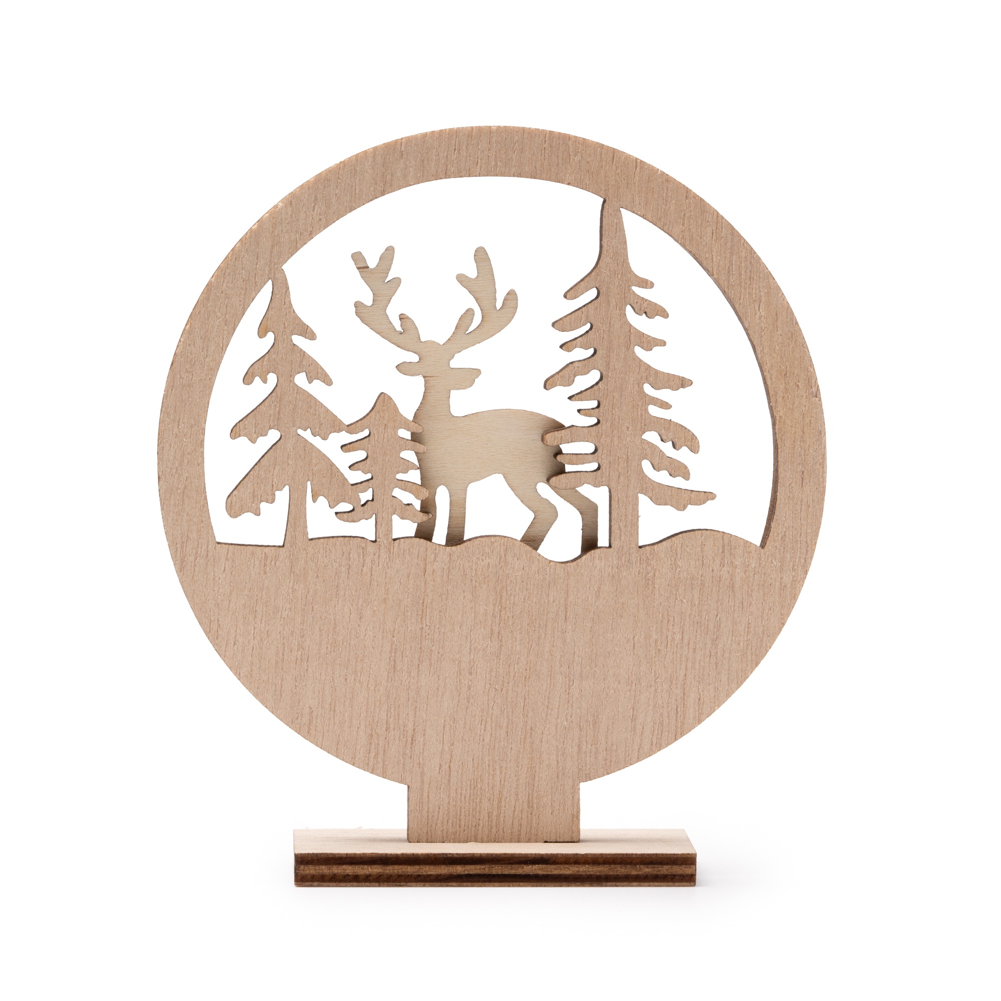 Ornamento natalizio in legno con base staccabile, ideale per decorare con fascino le feste.