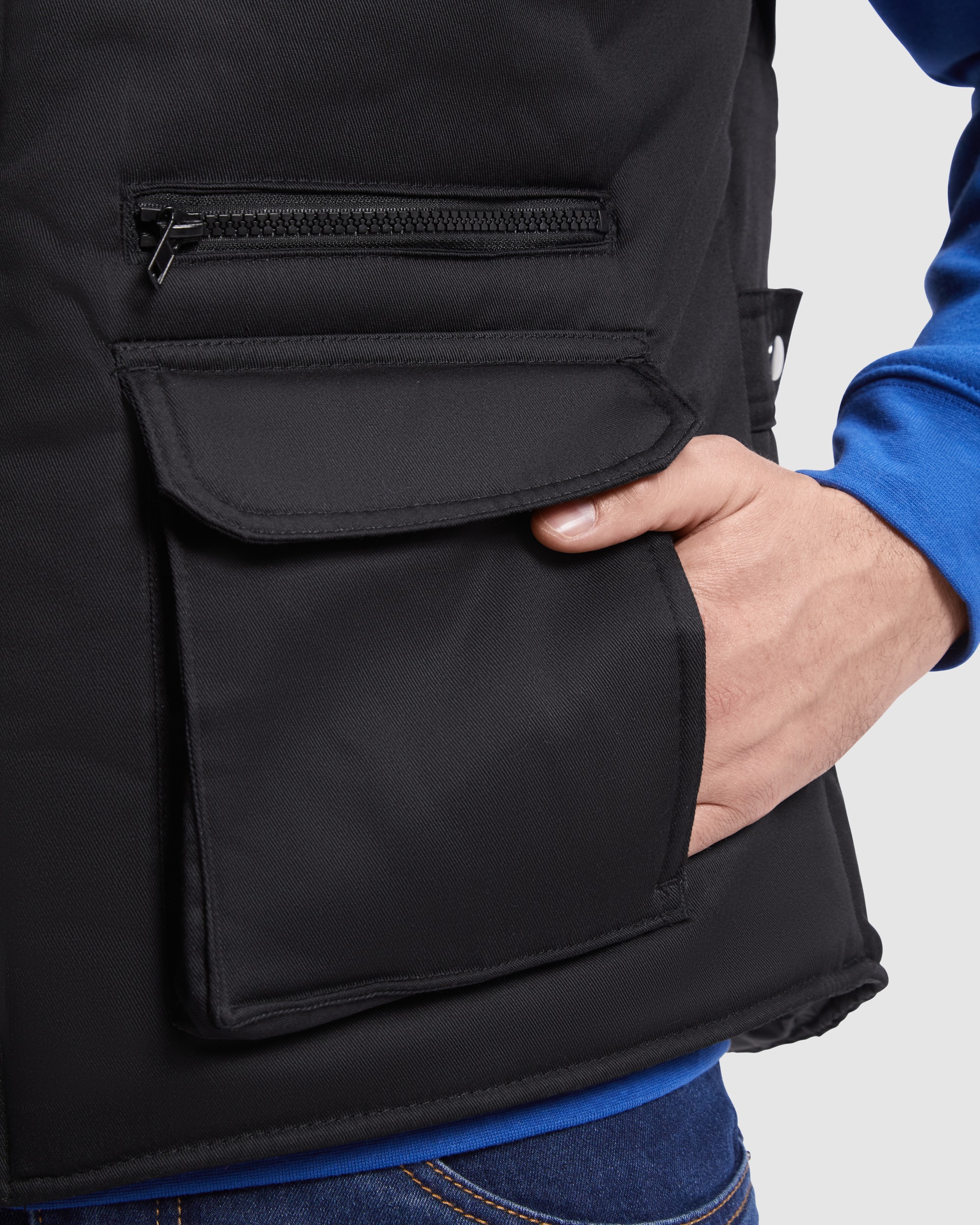 Gilet da lavoro multitasche imbottito con schienale esteso.